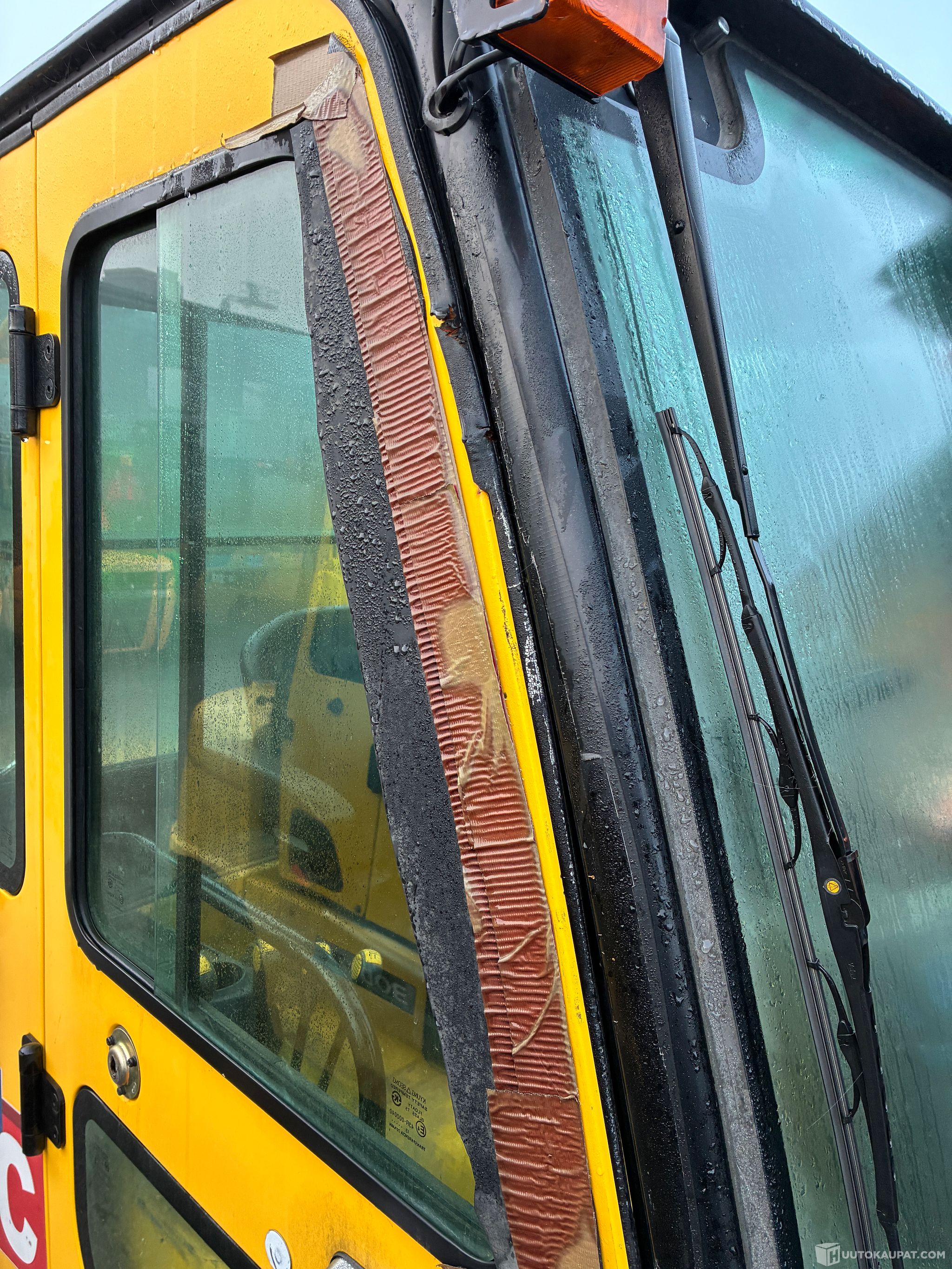 Ohjaamon yhtä lasia korjattu teipillä ( katso kuva )