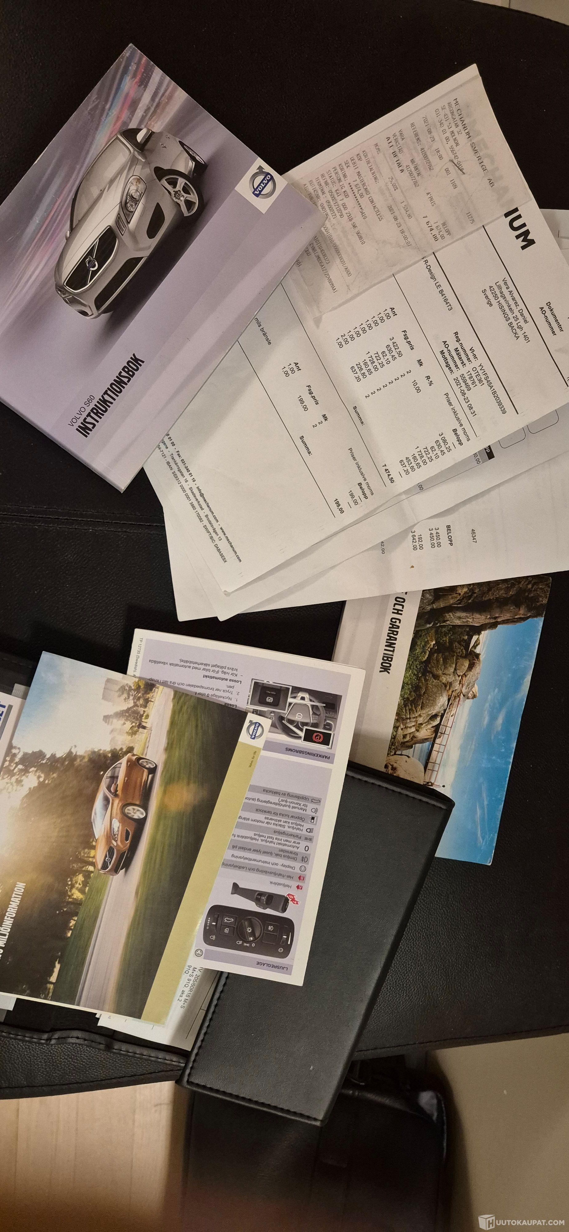 Löytyy hyvin täytetty huoltokirja sekä jonkin verran kuitteja.