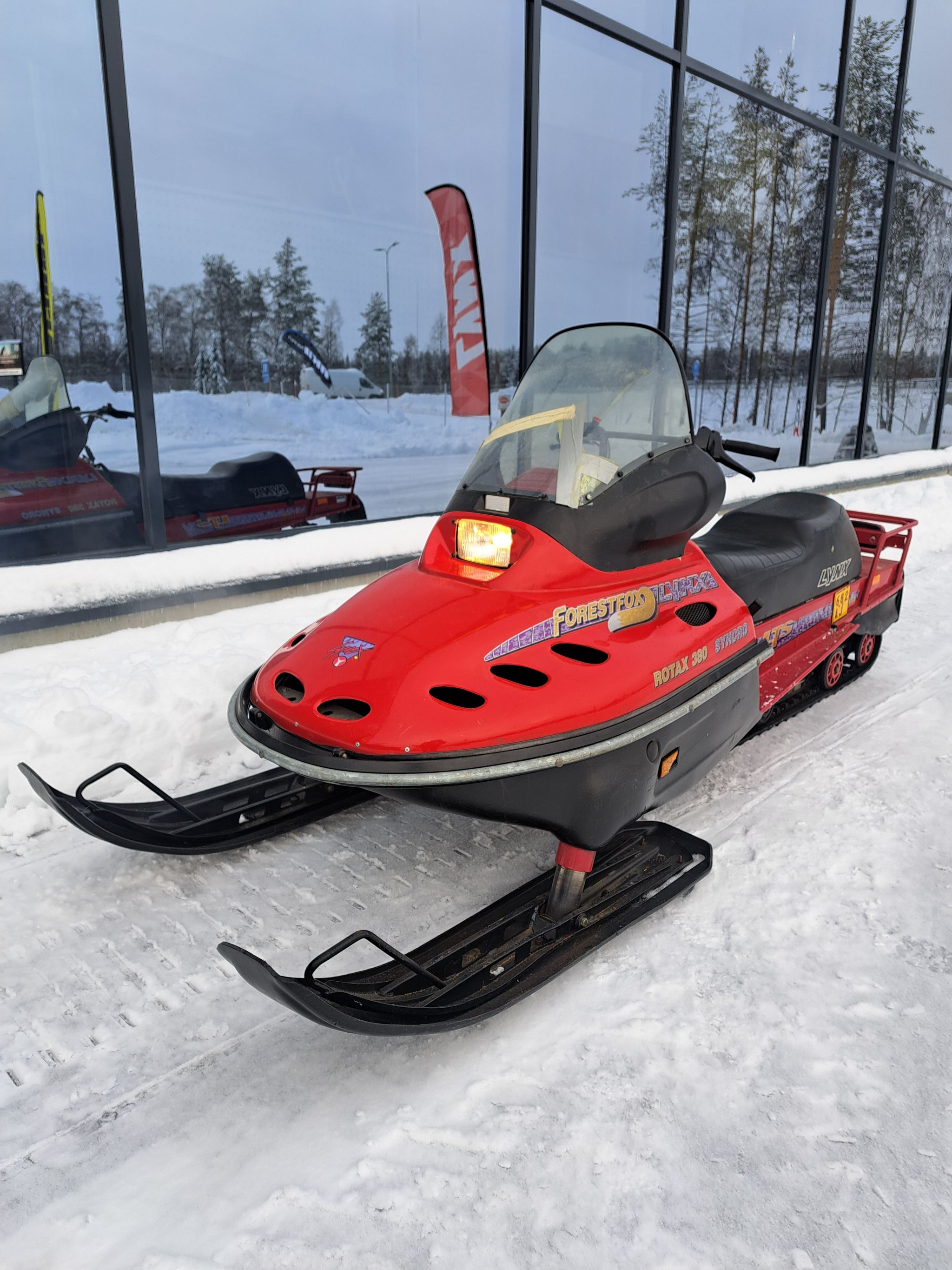 HARVOIN TARJOLLA! Legendaarinen Lynx Forest Fox 377 Syncro umpisen kulkija! Vaihteet 2+1, moottorina ikiliikkuja Rotax 377. Kelkka on ikäisekseen nättikuntoinen. Näitä ei enää oo paljon toimintakuntoisena liikkeellä!