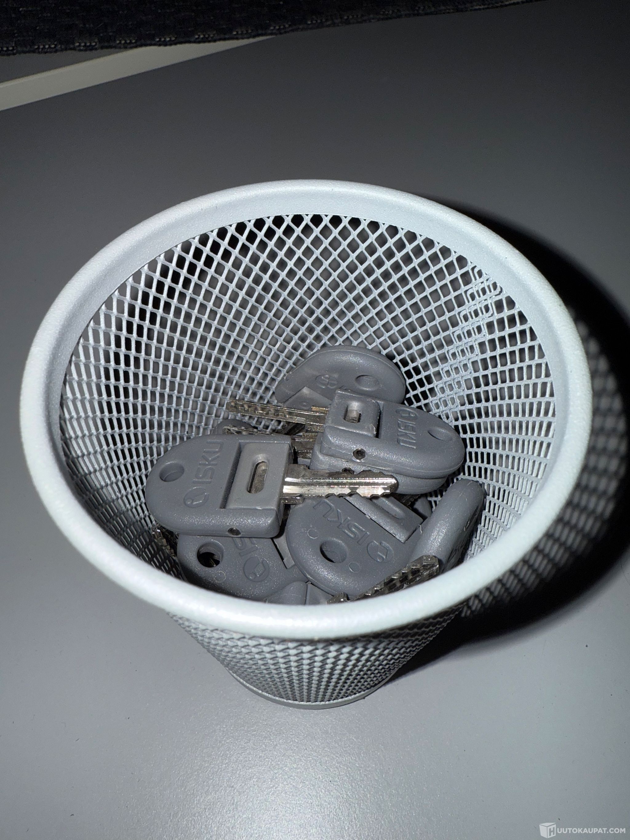 Osassa pehmustettu äänieriste takaseinässä. Avaimia kasa, ei tiedossa montako avainta puuttuu.