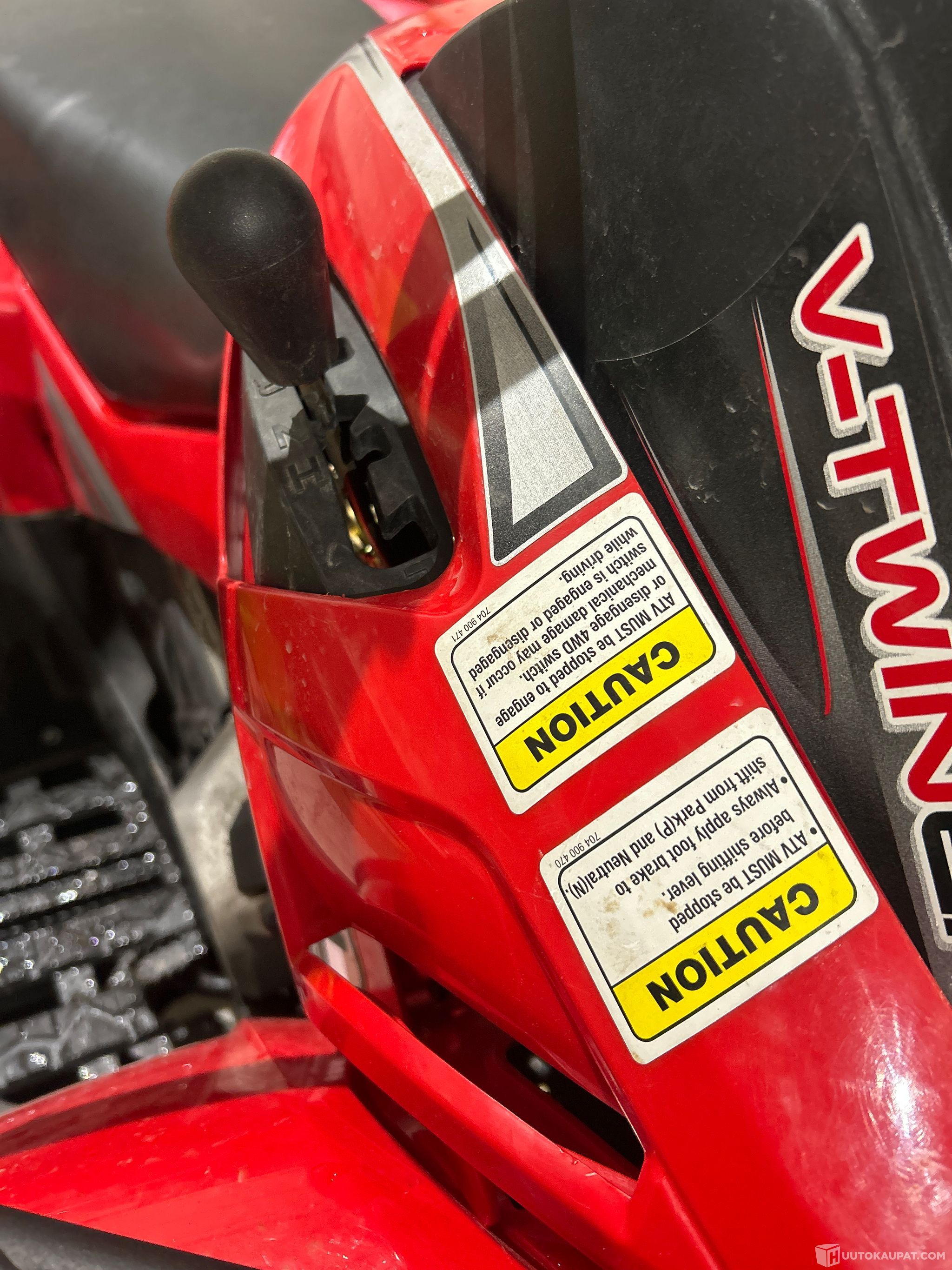 Koeajettu ja ulkoisessa kuntatarkastuksissa ei ole huomattu päällisin puolin muuta kuin vaihteensiirtäjän muovikate liikkunut ja vaihteenvalitsimen varsi ei mene suoraan N kohdalle . Tuote myydään siinä kunnossa kun myyntihetkellä on ilman takuuta ja palautusoikeutta . Mönkijään pääse tutustumaan ja koeajamaan myymälässä arkisin klo.10-17 ennen sitovan tarjouksen jättämistä