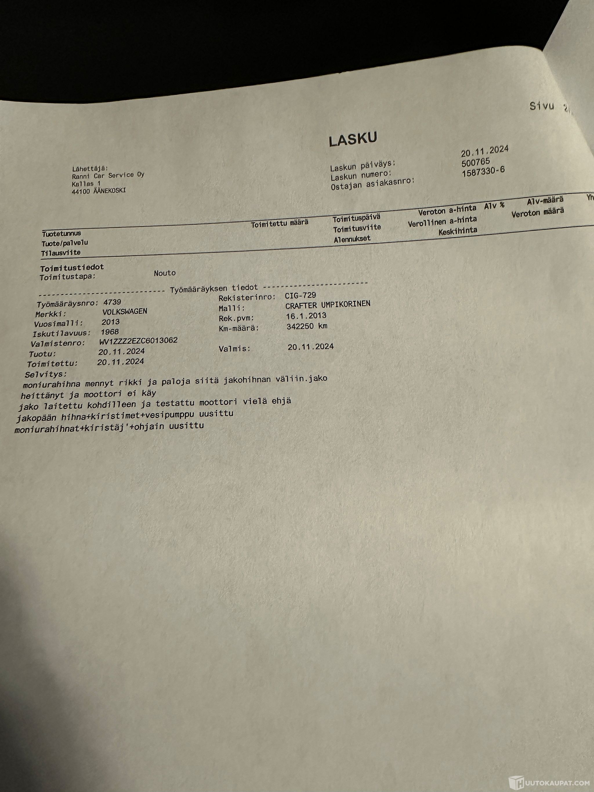 Ajoneuvo noudettava 7vrk kuluessa huutokaupan päättymisestä ellei toisin sovita -Huutokaupat.com.