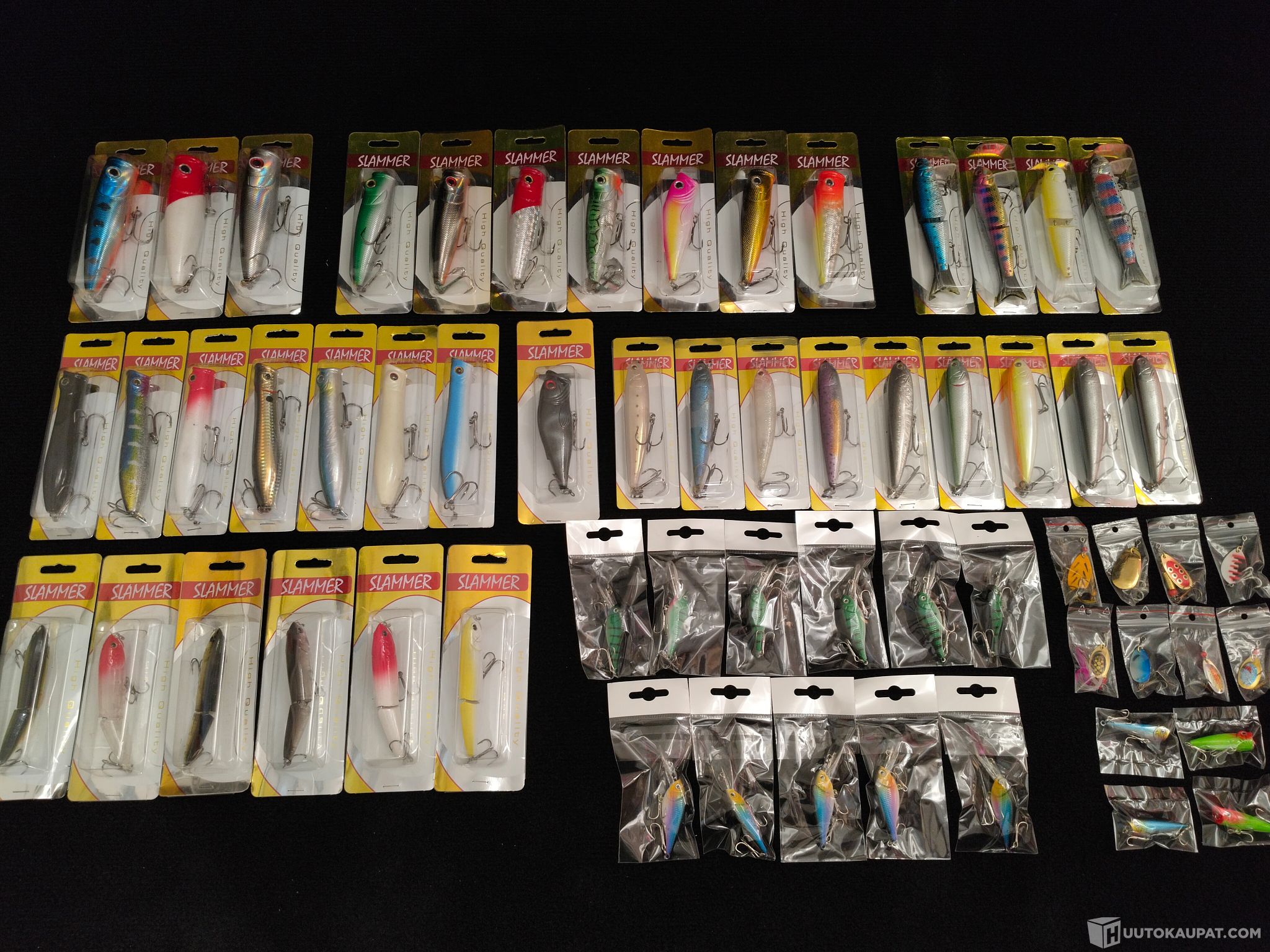 Myydään iso 60 kappaleen viehe-erä, joka sisältää useita erilaisia malleja ja värejä.