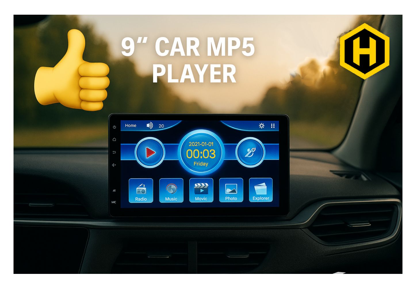 Kätevä ja monipuolinen autosoitin 9 tuuman näytöllä!
