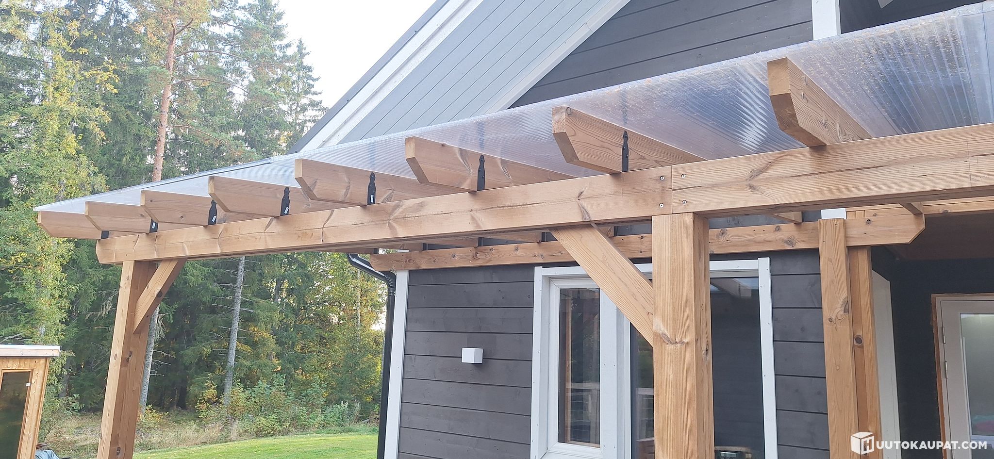 Lämpökäsitelty mänty runkolankku, monikäyttöinen tuote, sopii terassien ja katosten runkoihin, laudelankuksi jne, myrkytön vaihtoehto