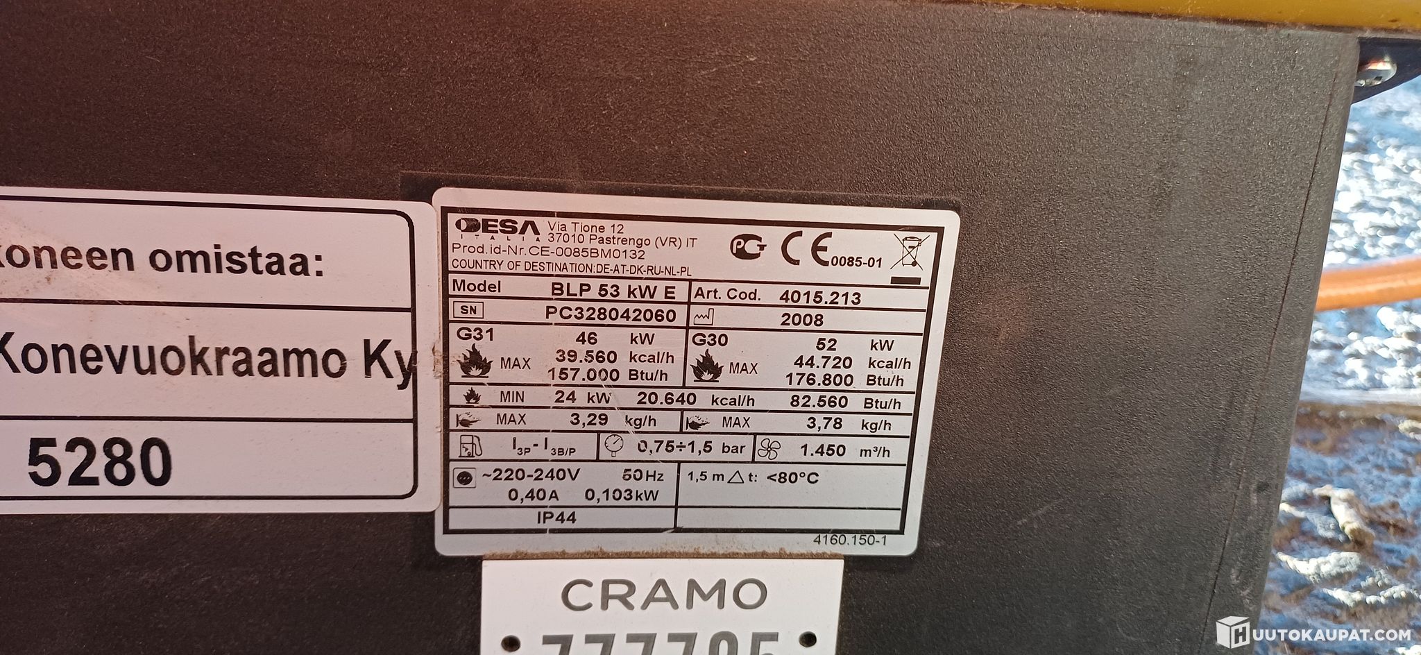 Tämän kohteen myyjä on Huutokaupat.com. Cramo Finland Oy antaa Huutokaupat.comin puolesta kohteesta lisätietoja ja vastaa kohteen luovutuksesta. Kohde tulee aina maksaa Huutokaupat.com-sivustolla olevien verkkomaksupainikkeiden kautta tai Huutokaupat.comin laskulla. Jos kohdetta ei makseta Huutokaupat.comille, Huutokaupat.com ei hyväksy mitään vastuuta kaupasta.