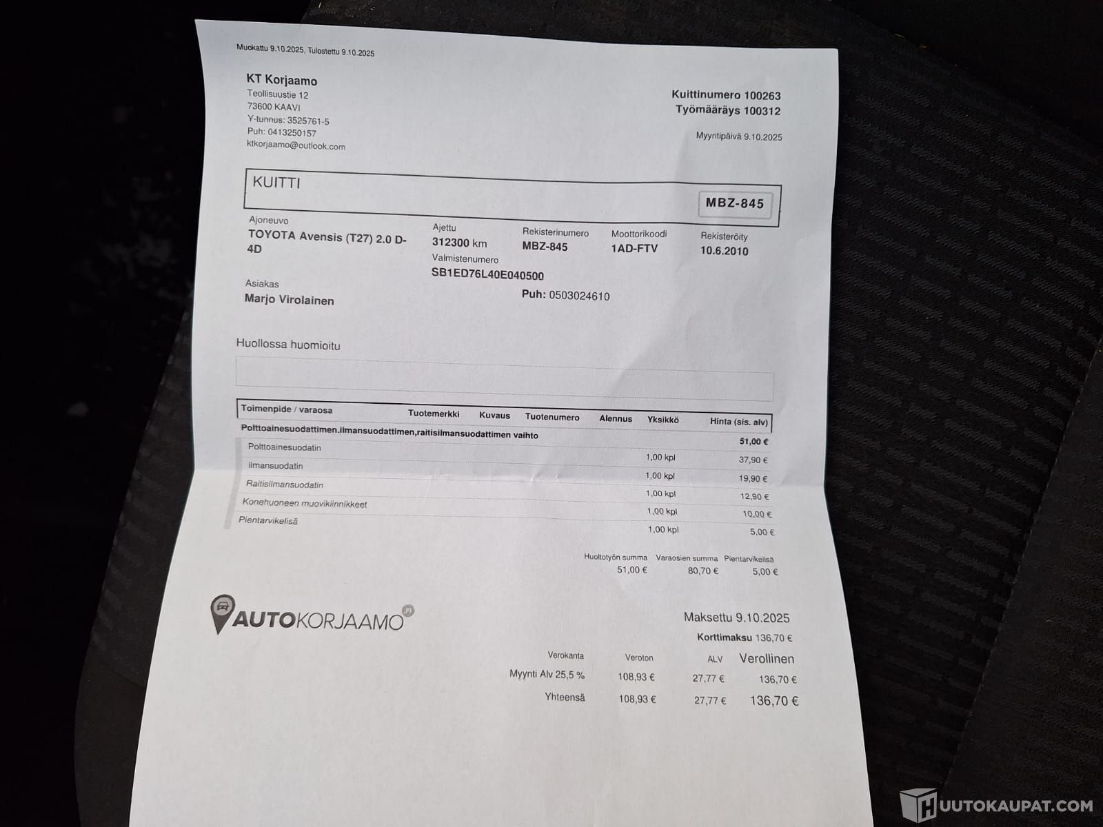 Autohuolto P-P Männistö ilmoittaa, Huutokaupat.com myy