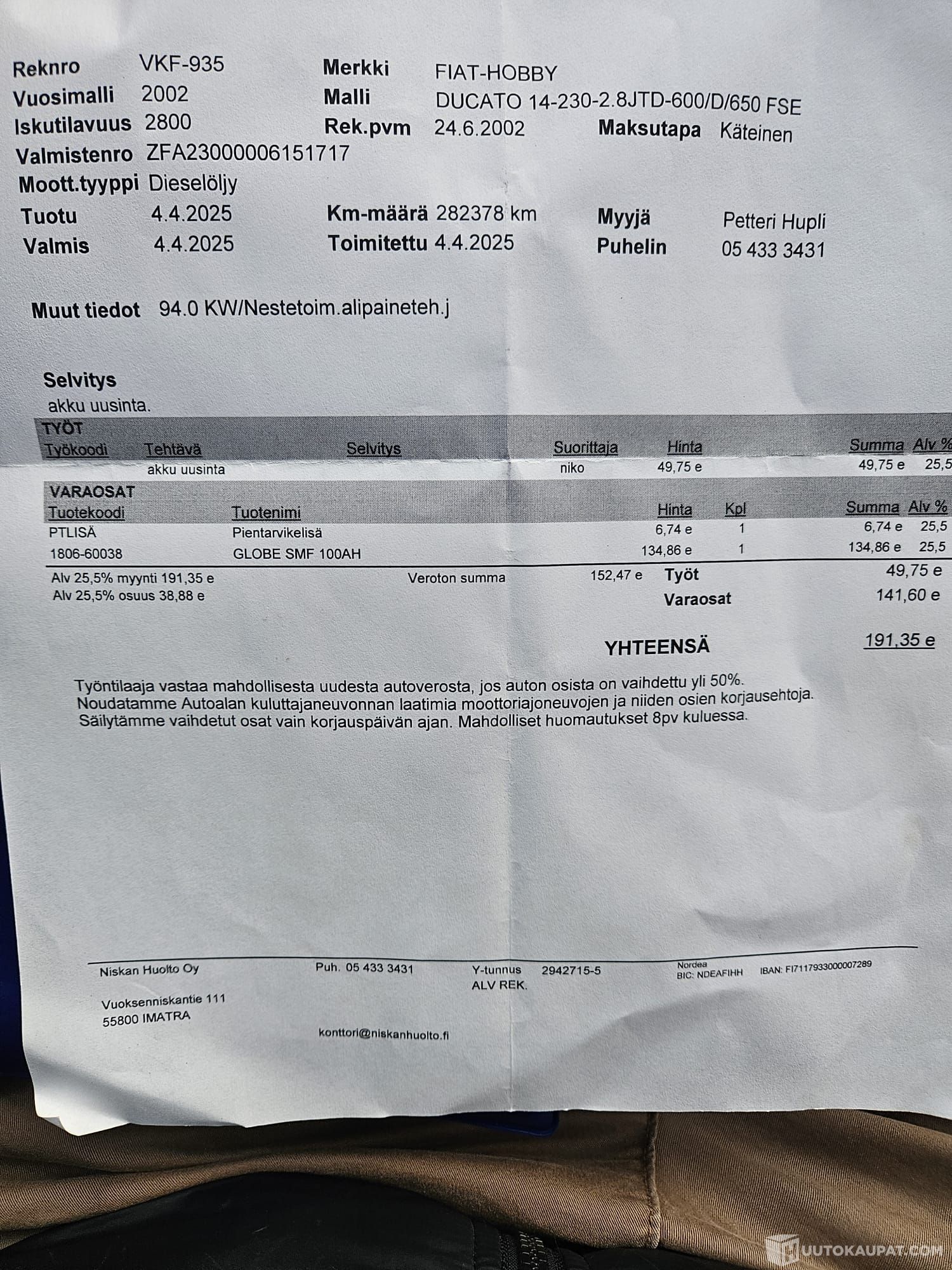 Waloauto Vantaa / Waloauto Oy ilmoittaa, Huutokaupat.com myy