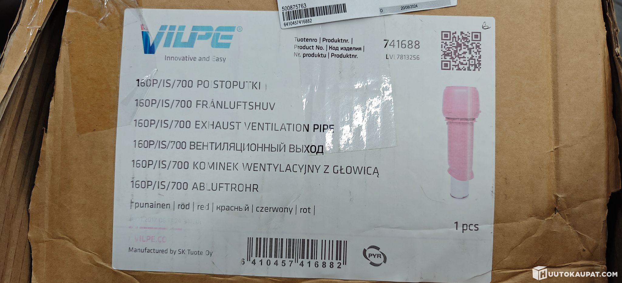 Halkaisija 160mm. Putken lisäksi tarvitaan katteen mukaan valittava kattoläpivientisarja.