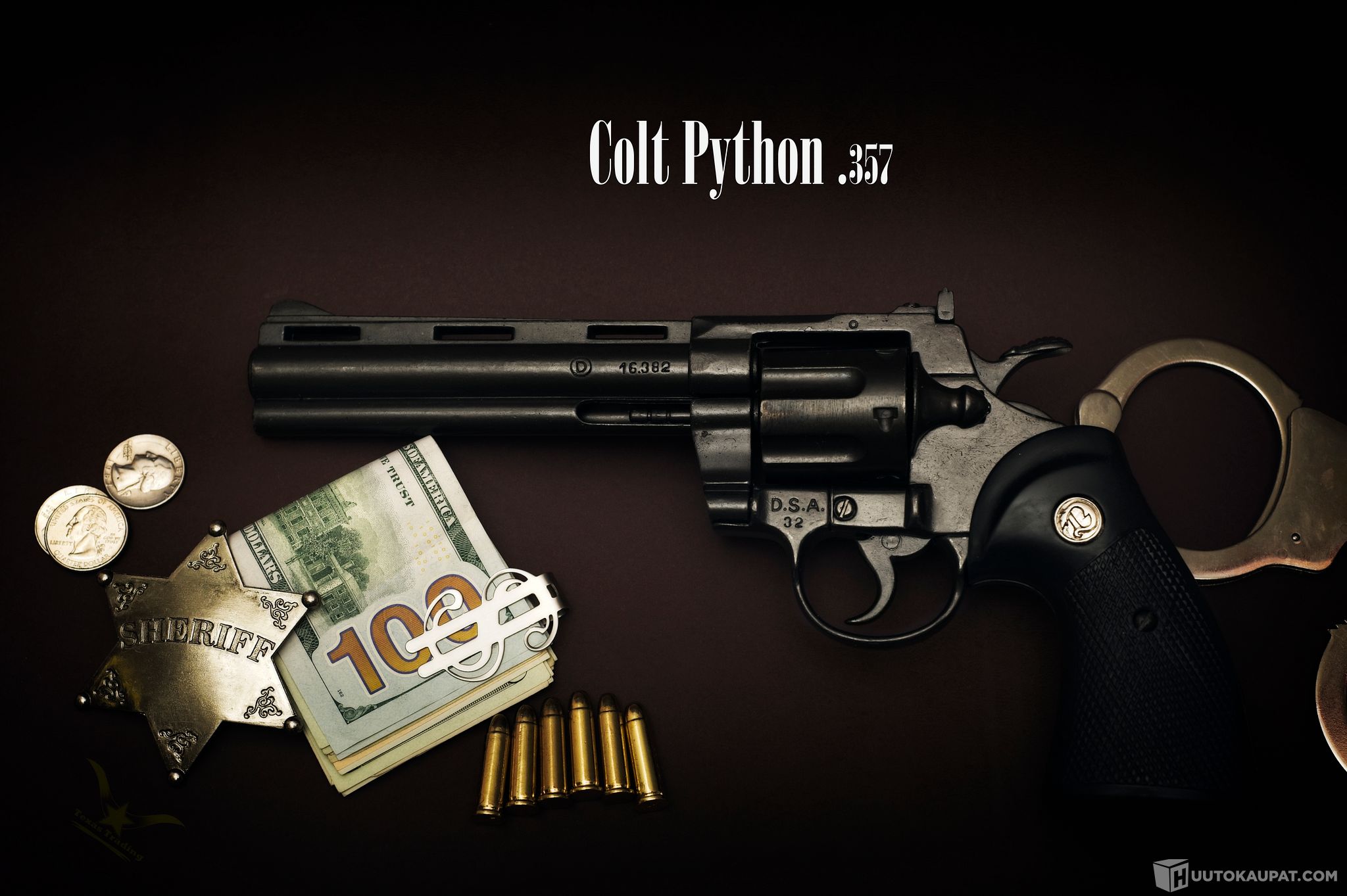 Huudettavana revolveri, kuvien rekvisiitta ei kuulu huutoon.