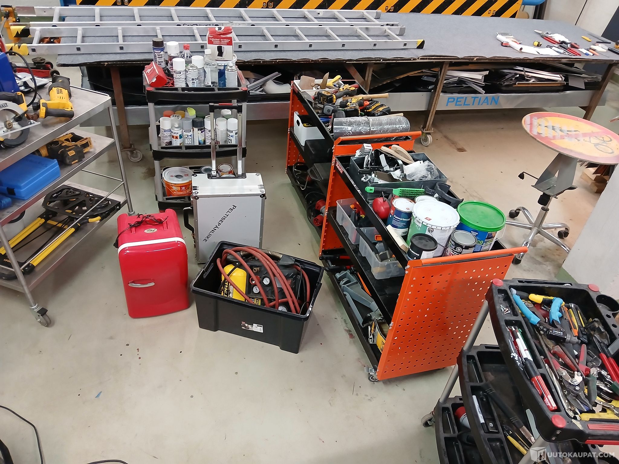6kpl työkaluvaunua ja kaikki niissä näkyvät käsityökalut