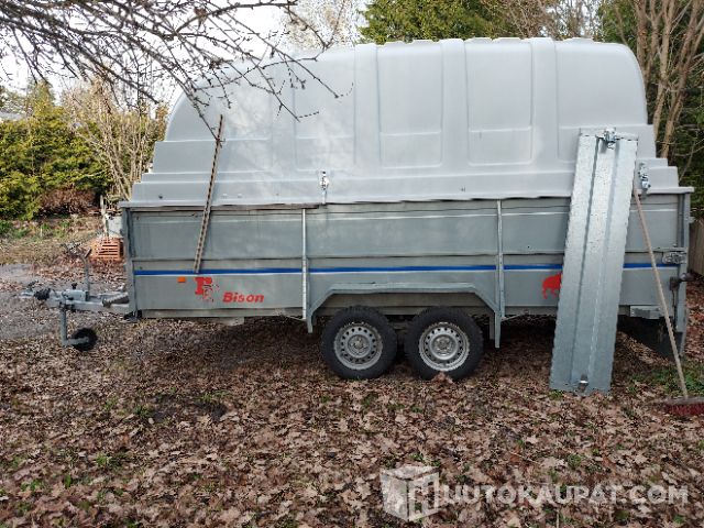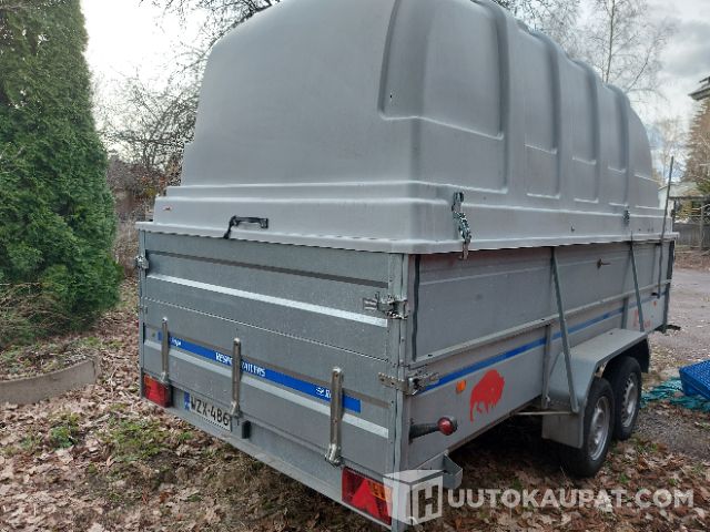 Hyväkuntoinen ja siisti jarrullinen iso perävaunu kuomulla.