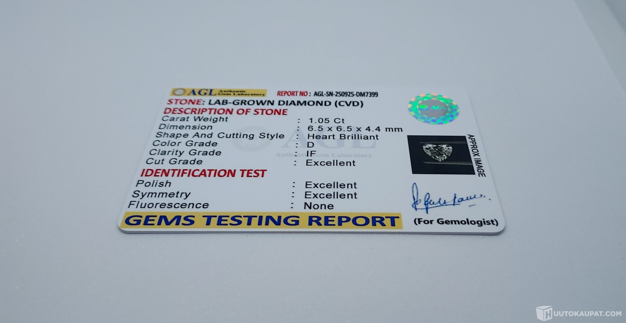 1,05 Karaatin Laboratoriossa kasvatettu timantti.