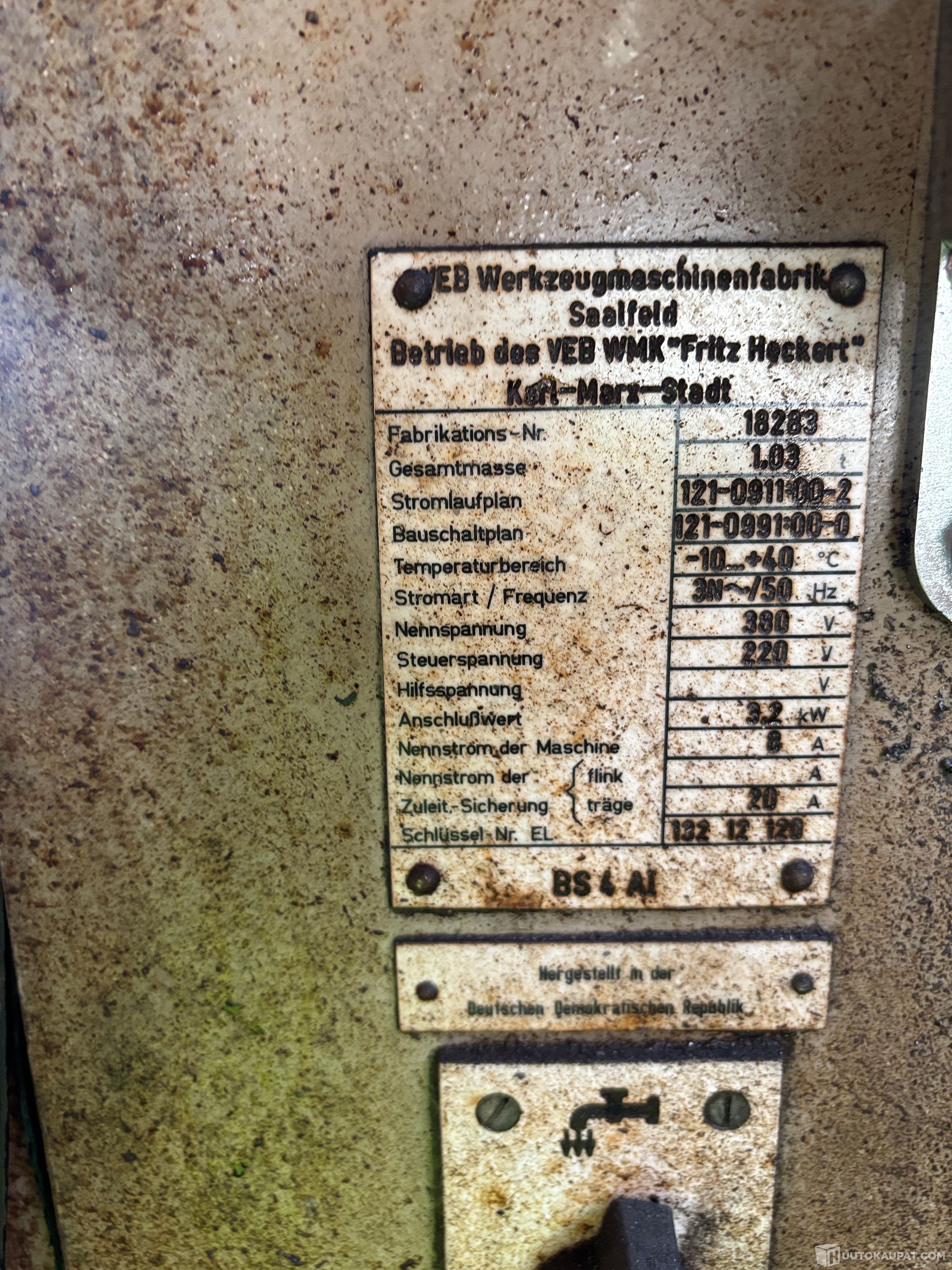 Valmistaja: VEB Werkzeugmaschinenfabrik Saalfeld (VEB WMK ”Fritz Heckert”, Karl-Marx-Stadt)