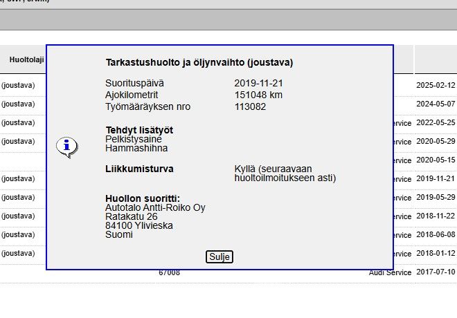 Huoltohistoria