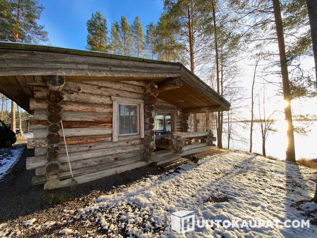 Kodikas kelomökki, jossa kolme makuuhuonetta, olohuone, keittiö, sauna, kylpyhuone, wc ja terassi