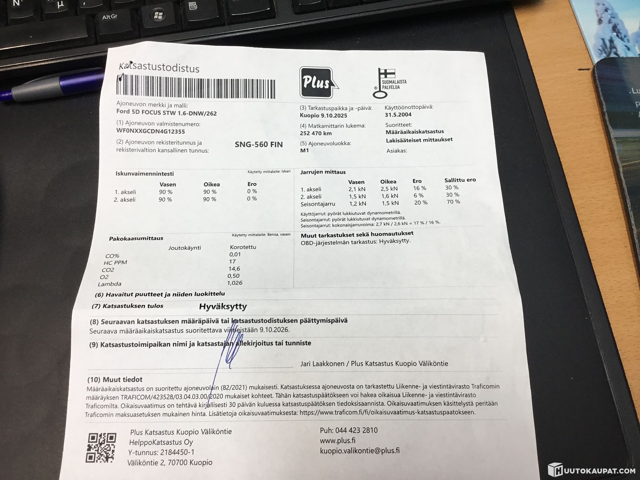 Ajoneuvolla on tehty lyhyt koeajo. Koeajolla havaitsimme: