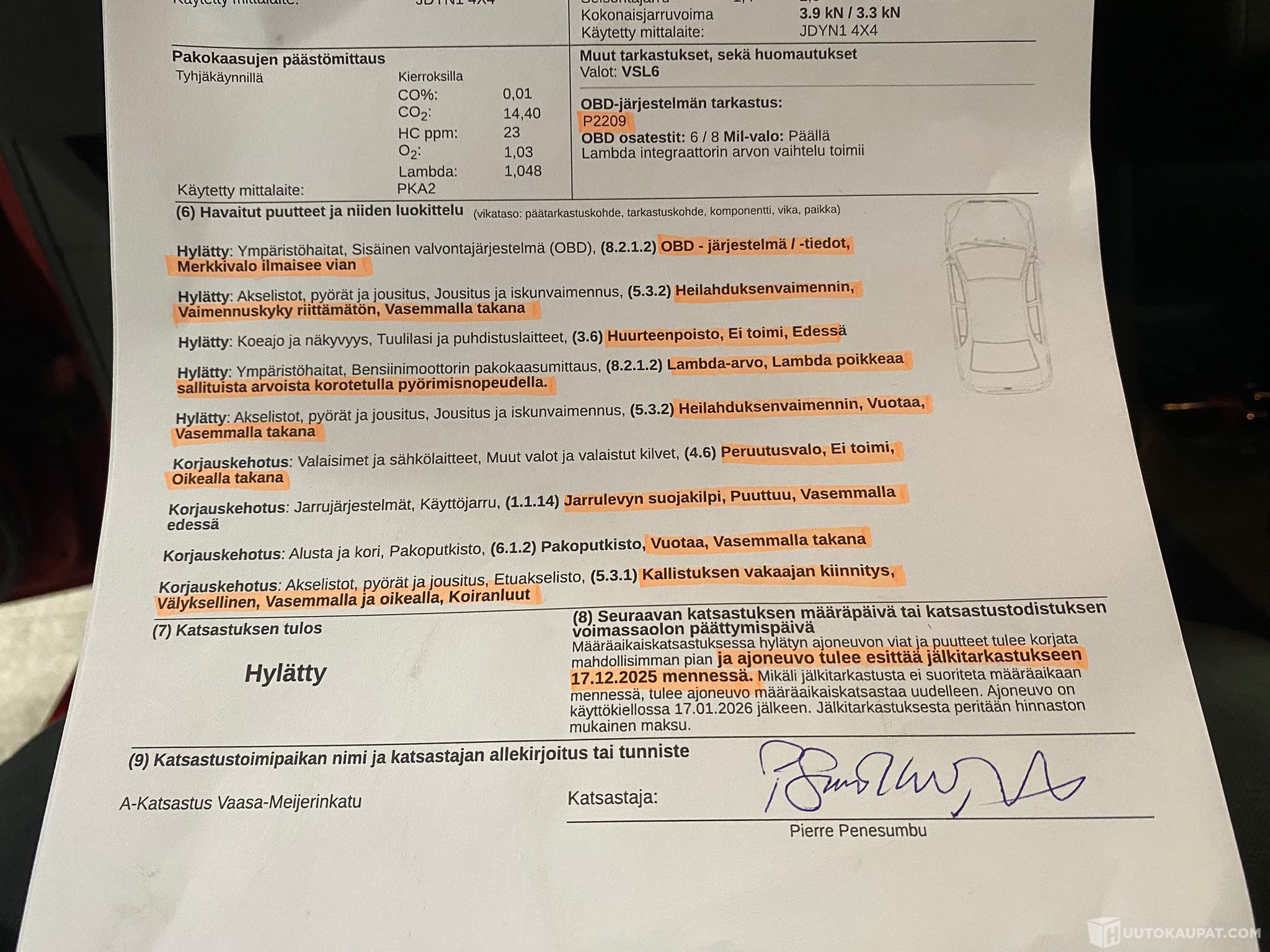 Talvirenkaat erimainiossa kunnossa, kesärenkaat alkavat olemaan merkissä. Muutamia muoveja puuttuu sekä korissa ja sisustassa virheitä.