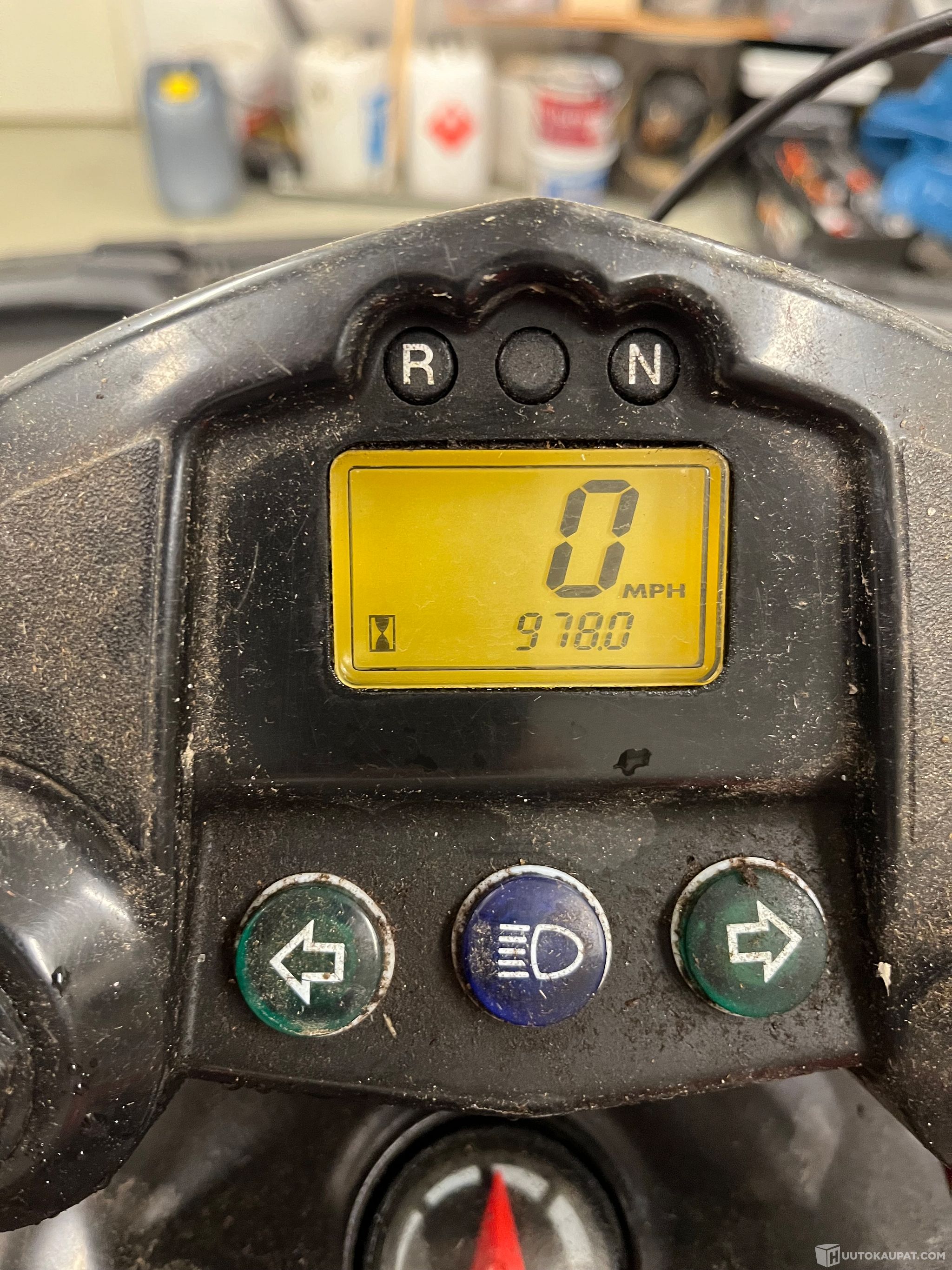 Huutokaupataan kevyessä piha-ajossa ollut alvillinen kaasarikone tieliikennemönkijä. Tunteja 980 h. Laitteeseen on viimeisen 1,5 vuoden aikana vaihdettu variaattorin remmi, ryypyn vaijeri, kaasuvaijeri ja bendix. Lisäksi penkki korjattu ammattilaisella. Kulkee 60 km/h. Mönkijässä on varusteena vinssi ja vetokoukku.