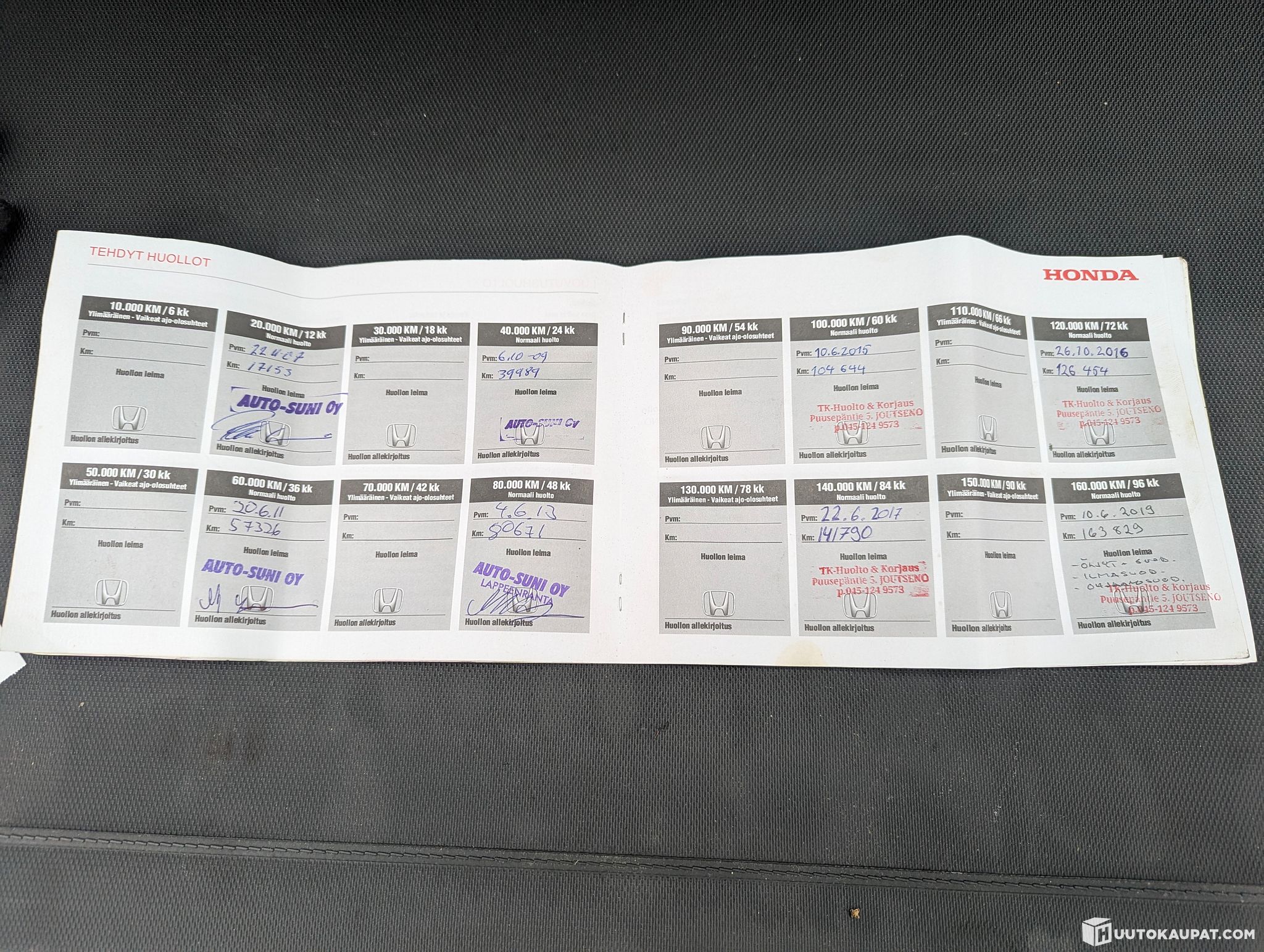 Autolla hyvä omistushistoria ja huollot tehty huoltokirjan viimeisimmän merkinnän jälkeen itse.