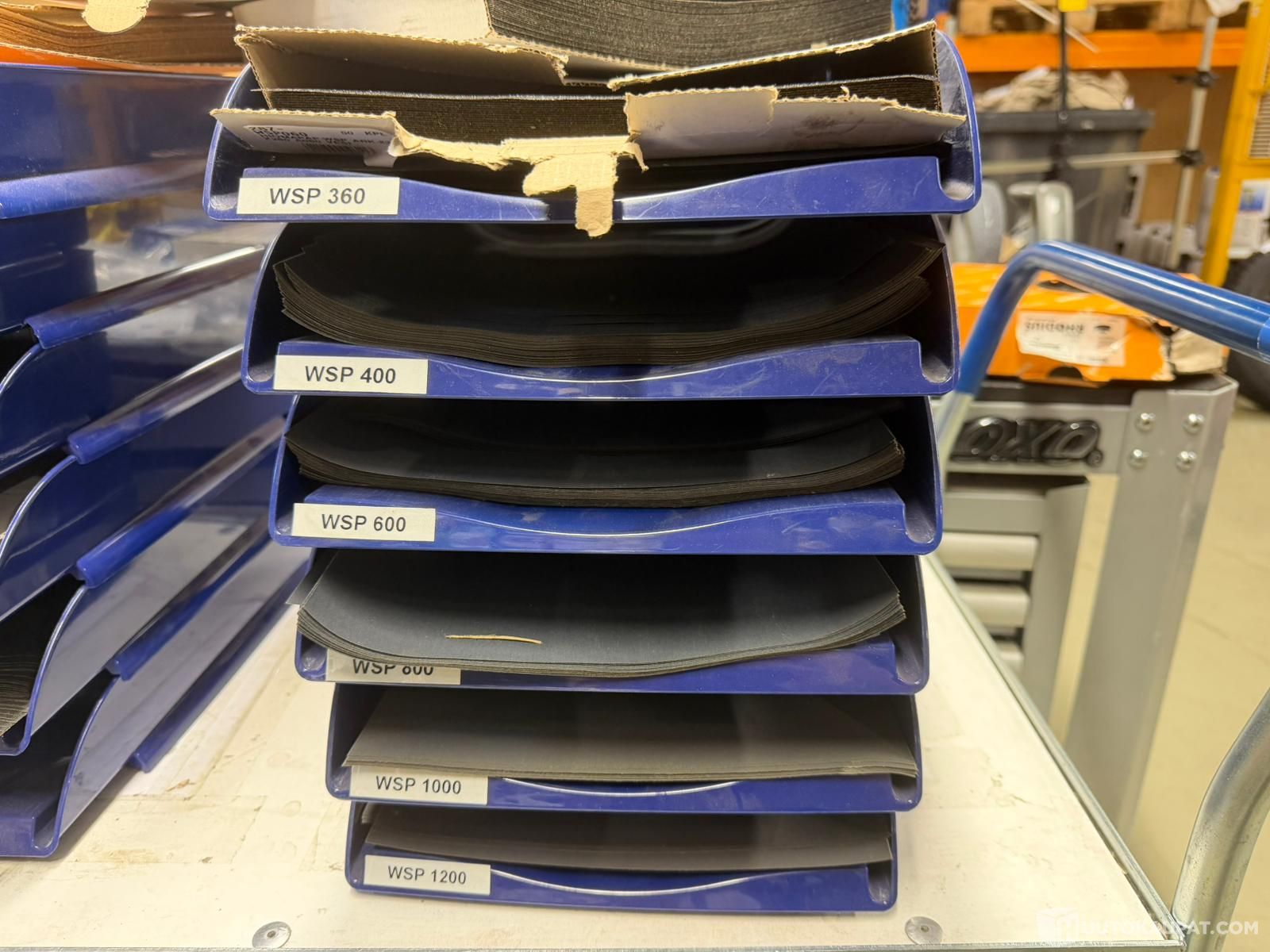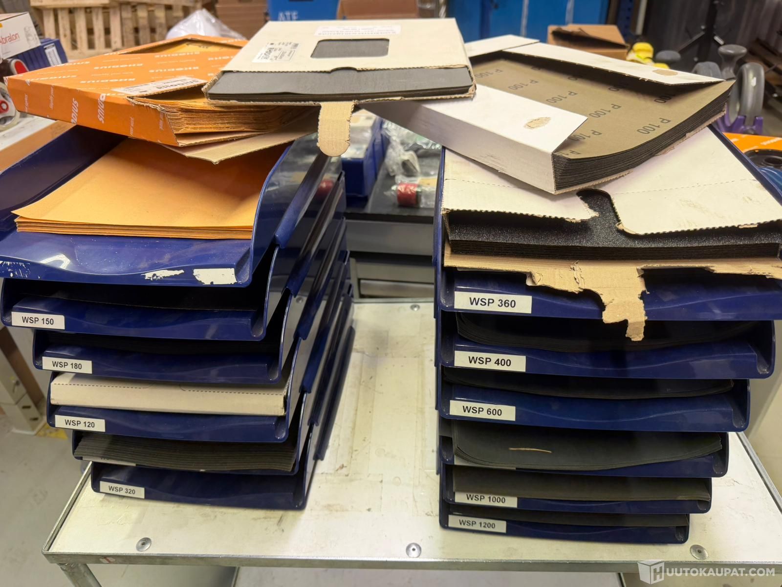 Sekalainen erä useampia eri karkeuksia / laatuja P60-P2000, tarkat määrät ei tiedossa.