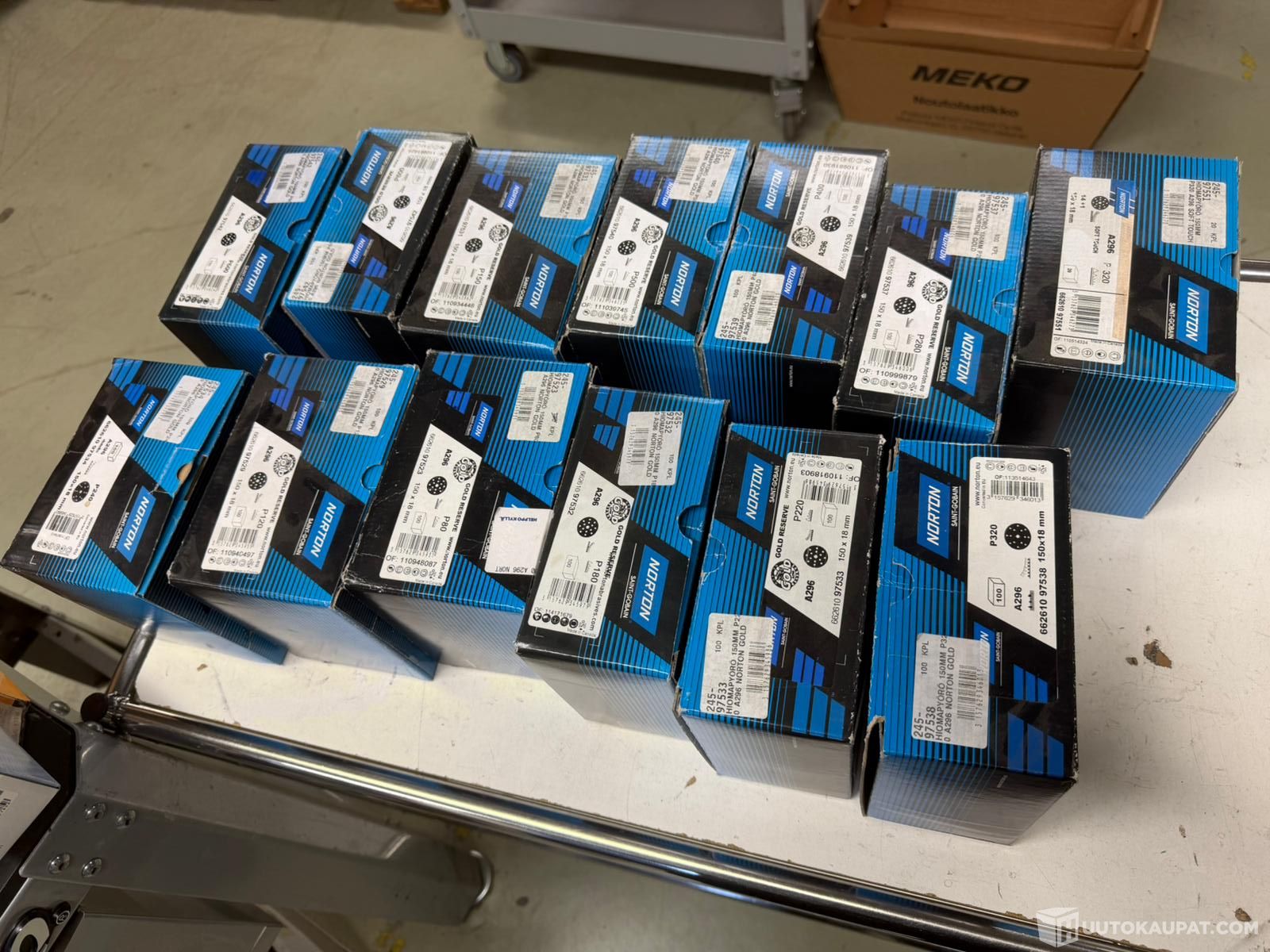 (Huom! Hiomapaperi laatikot eivät ole täysiä, osassa enemmän ja osassa vain vähän jäljellä!) Tarkat määrät ei tiedossa.
