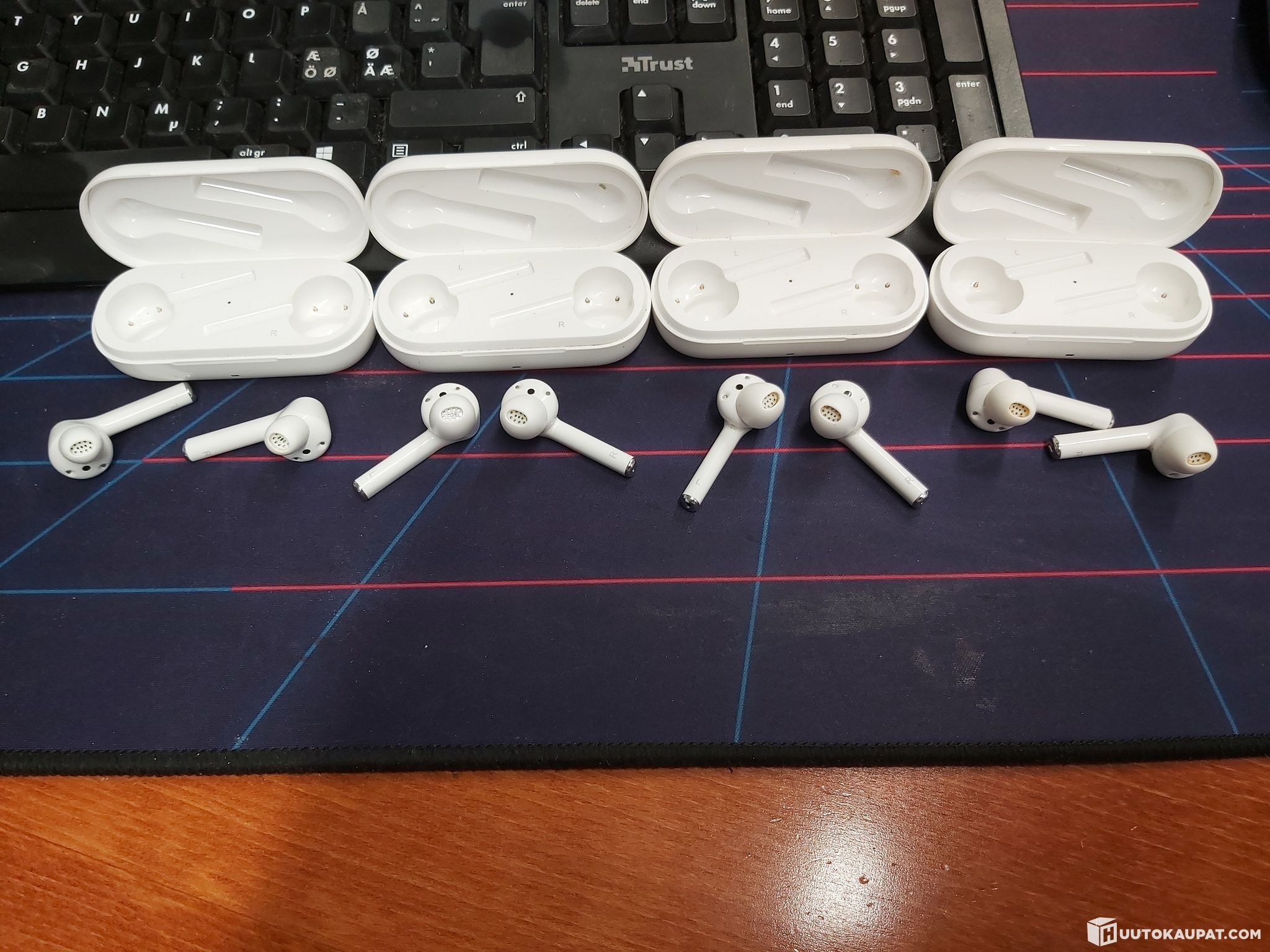 Käytettyjä, mukana napit, latauskotelot ja laturit.