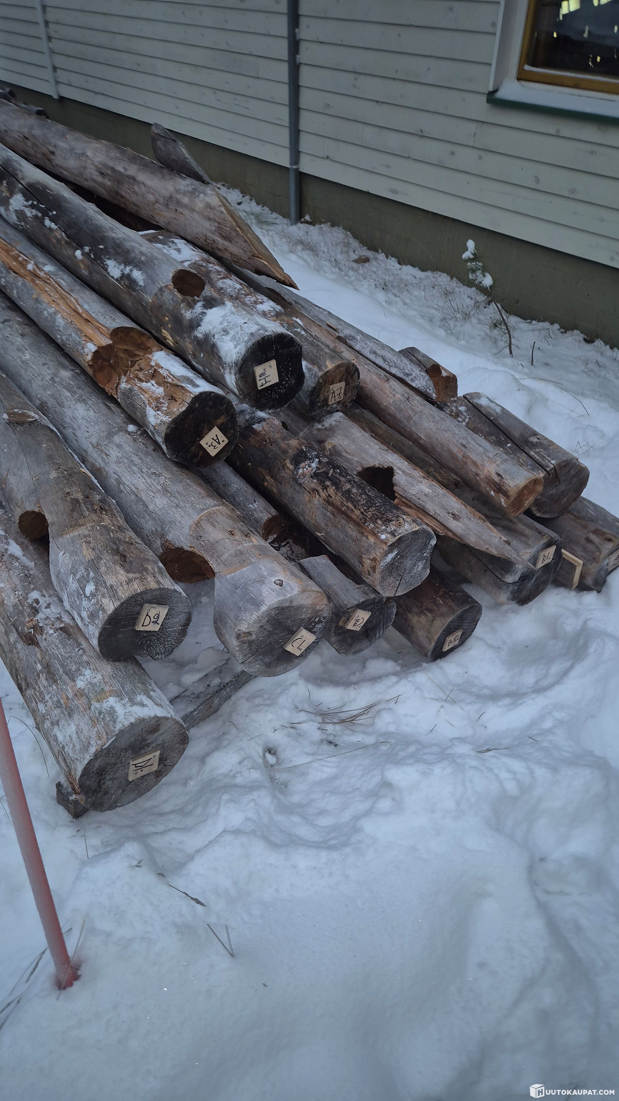 Myydään hongasta salvettu laavukehikko purettuna ja merkattuna tien varressa. Koko noin 370x250. Ei sisällä lattia-, eikä kattorakenteita. Noudettava pikaisesti, ettei jää lumien alle.