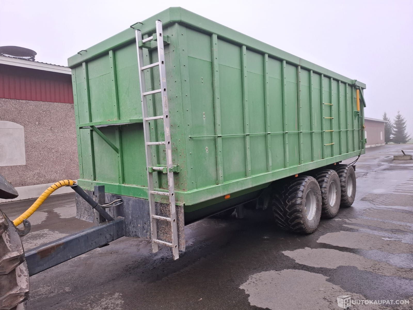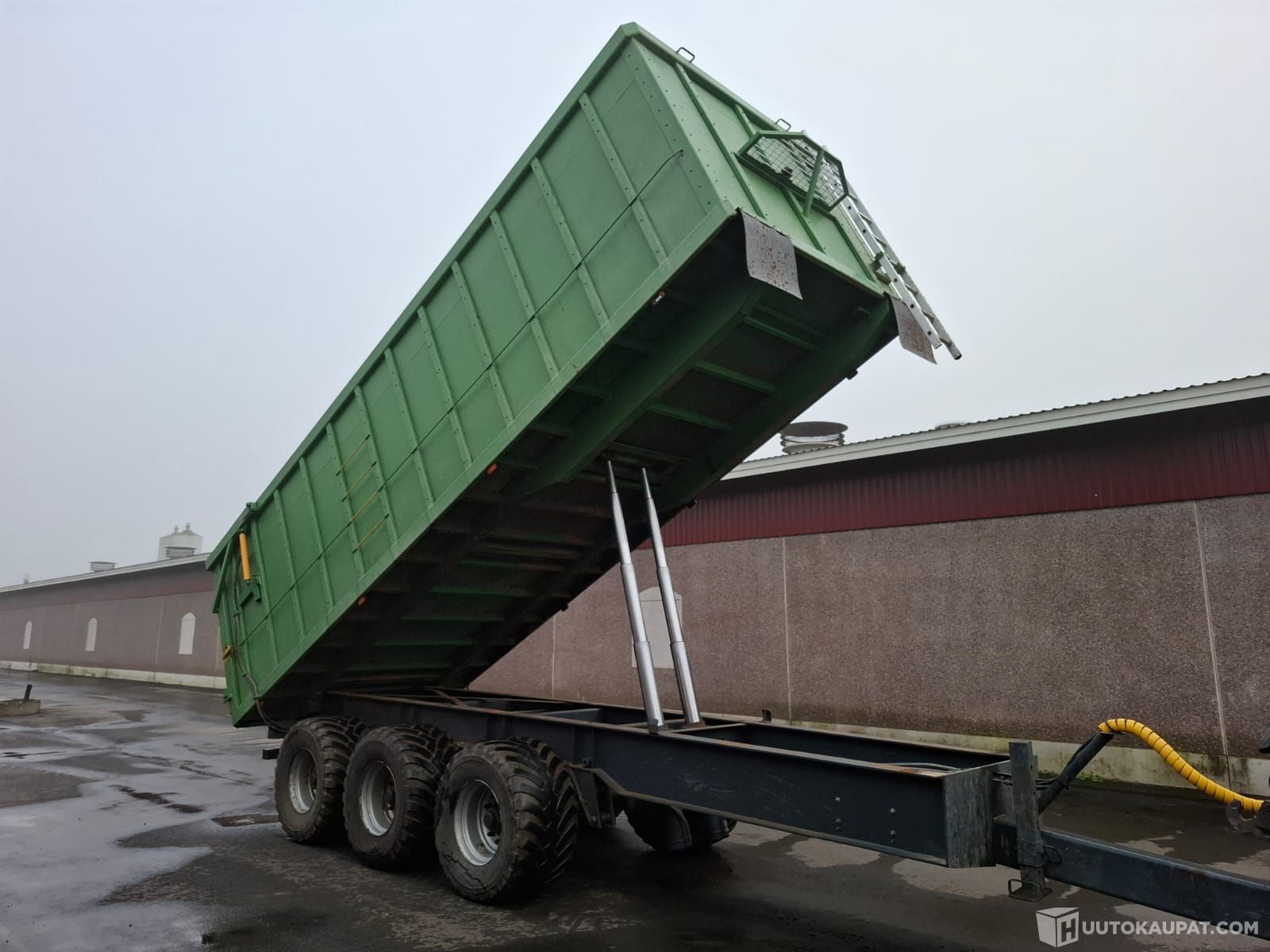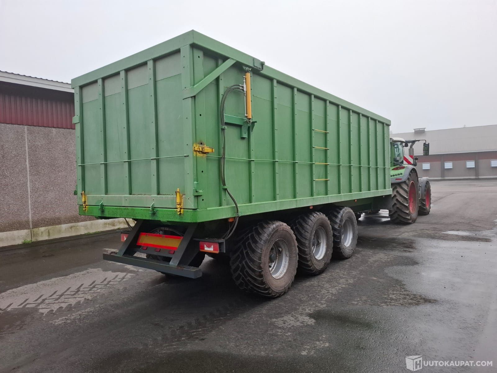 Myynnissä omavalmisteinen 3-akselinen perävaunu. Ollut hakkeen, turpeen ja viljan ajossa. Laita ja pohjamateriaalina filmivaneri, jolloin kiinnijäätymisongelmia ei ole ollut. Kippinä Nummi 50t-parikippi, vesitilavuus 35 m3. Kipatessa todella vakaa, ajossa tulee hyvin perässä. Ilmajarrut duomaticilla, 2 akselilla, manuaalinen jarruvoiman säätö. Hydraulinen perälaita, varmuuslukoilla. Säädettävä vetolenkin korkeus. Renkaat 600/50 R22,5.