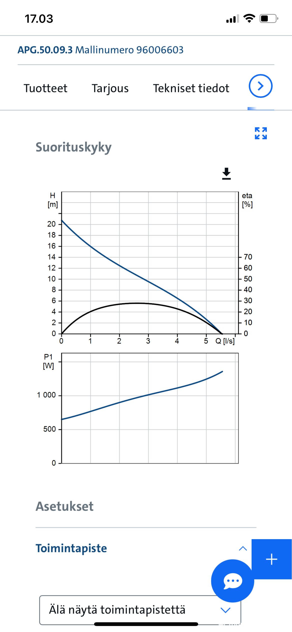 Tuotto: 19,6 m3/h