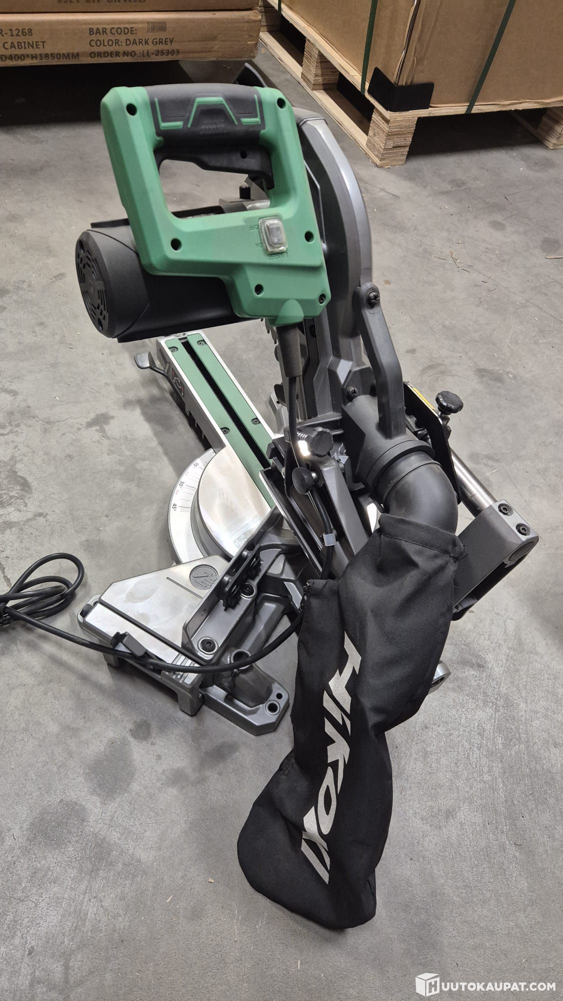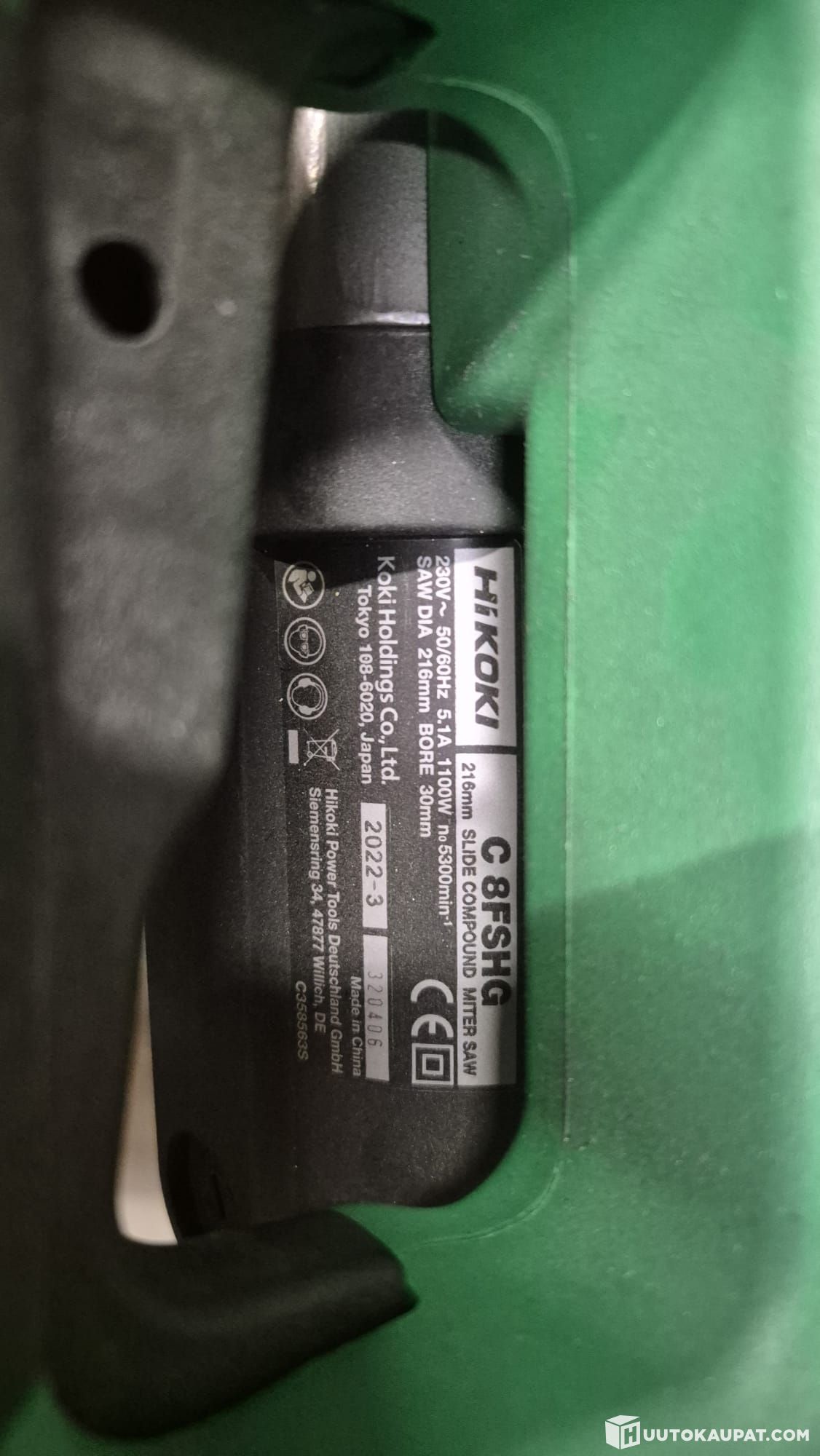 Myymälässä mallina ollut Hikokin jiirisaha, josta on hukkunut teräsuoja ja varmaan sen kiinnikepultit.
