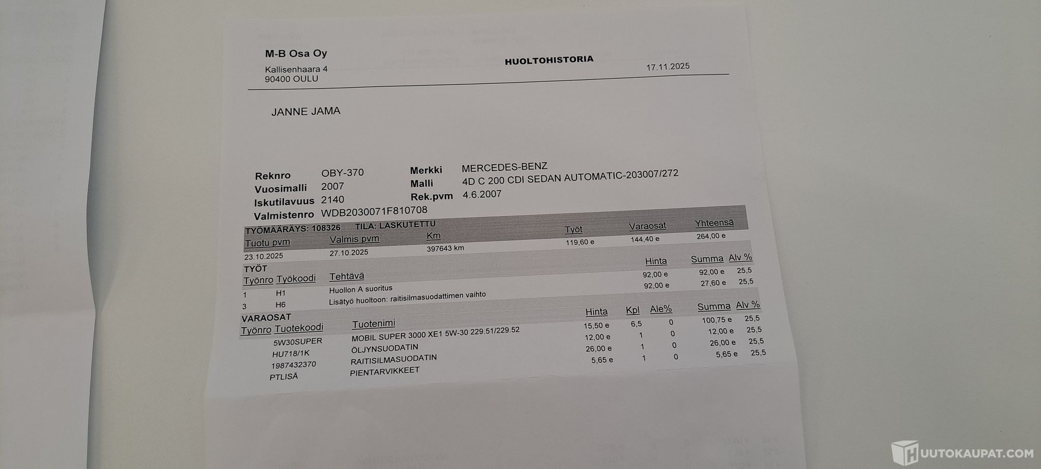 Auto ei ole ollut toimestamme teknisessä kuntotarkastuksessa eikä kaikkien varusteiden