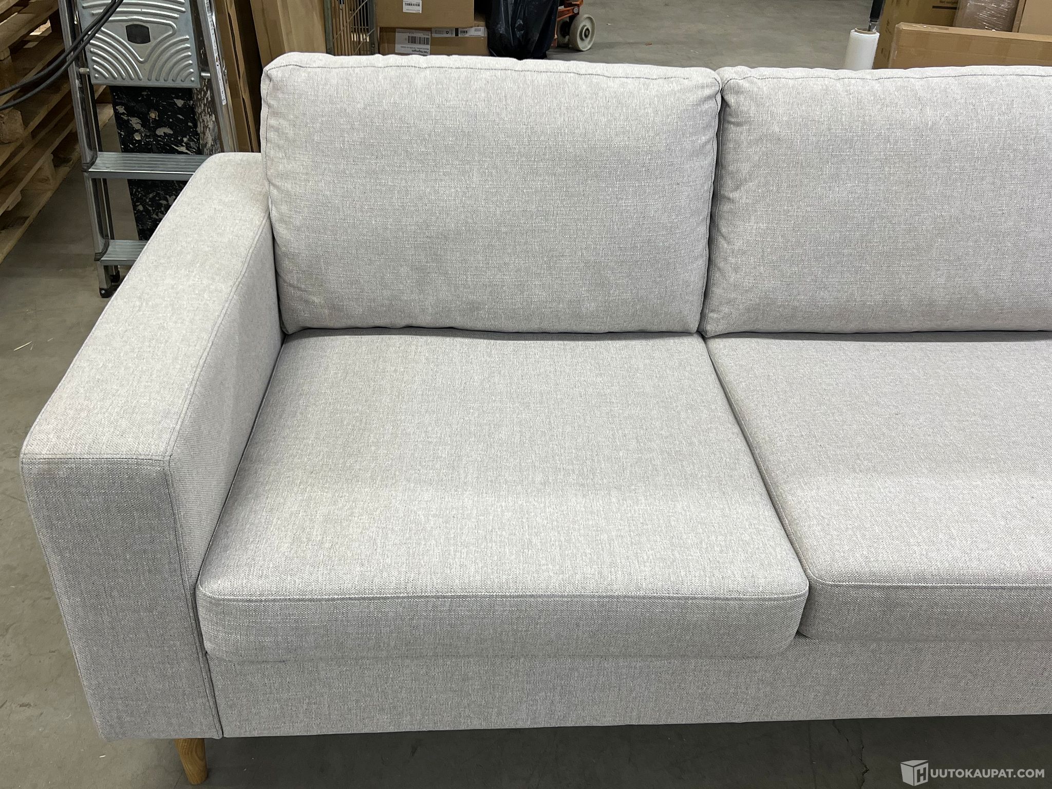 Sohva on käytetty. Kangas osittain nukkaantunut. Istuintyynyt käännetty nukkaantunut puoli alaspäin(lukuunottamatta avokulmaosan iso tyyny), Pientä likaa/käytönjälkiä löytyy. Toimitetaan jalat irrallaan lavalla kelmuun käärittynä.