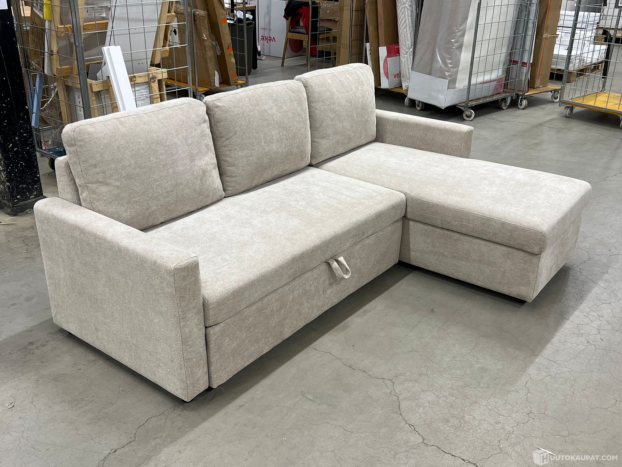 Asiakaspalautus. Sohva on käytetty. Sohvan runko narisee. Sohvassa muita kuvienmukaisia vikoja.