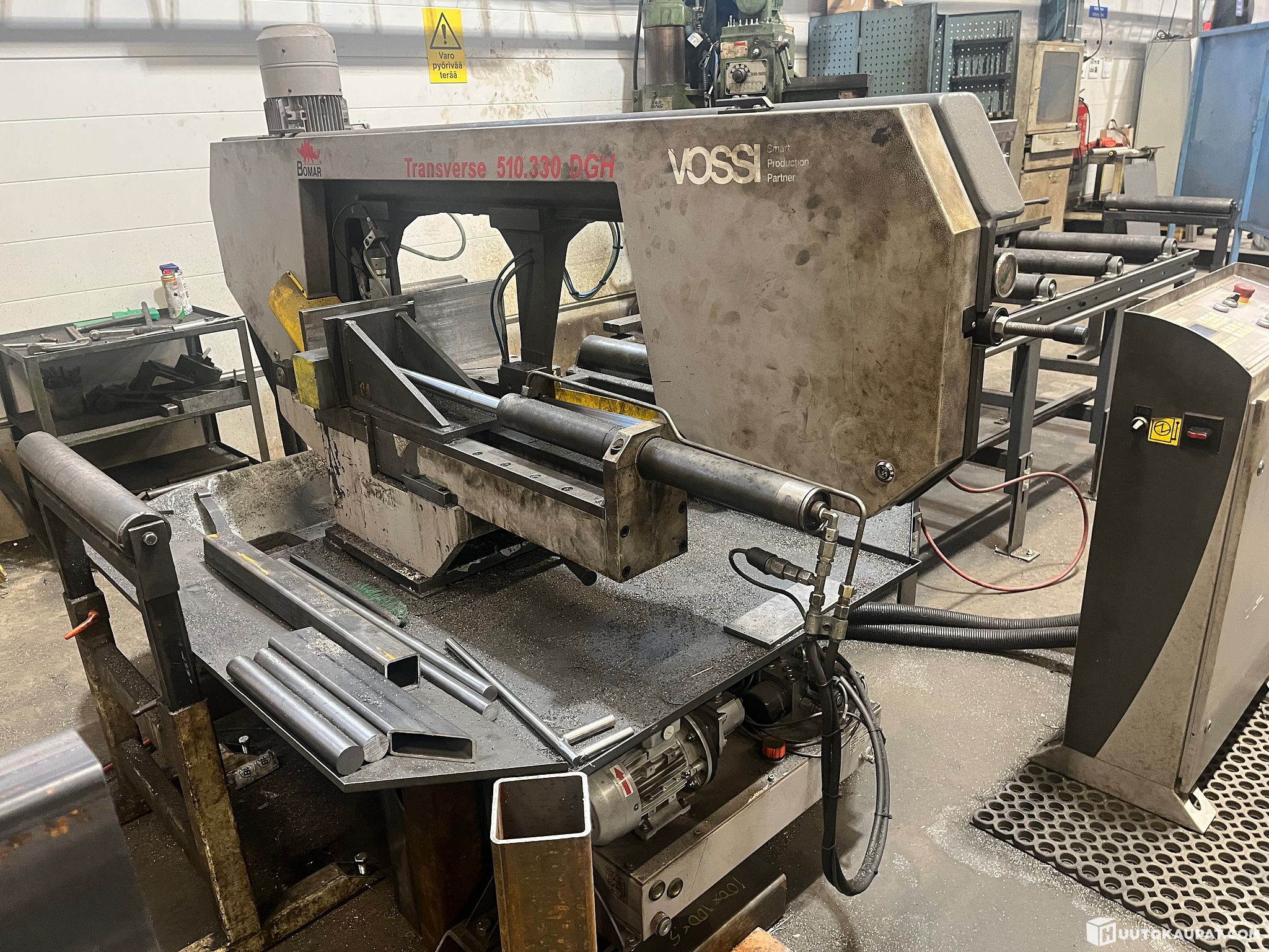 KUVIEN MUKAINEN VANNESAHA JA RULLAPÖYDÄT KETJUKULJETTIMELLA noin 10+ 13 m.