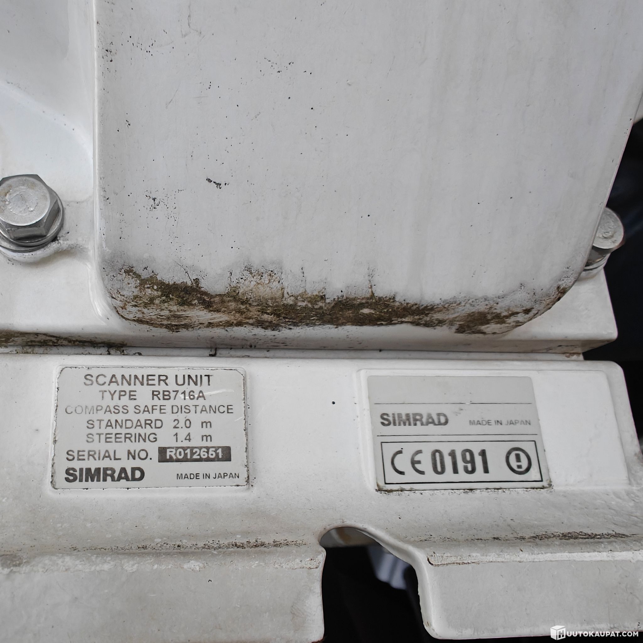 Huutokaupataan käytöstä poistettu Simrad RB716A tutka-antenni kaapeleineen. Irroitettu toimivana. Myydään romuna.