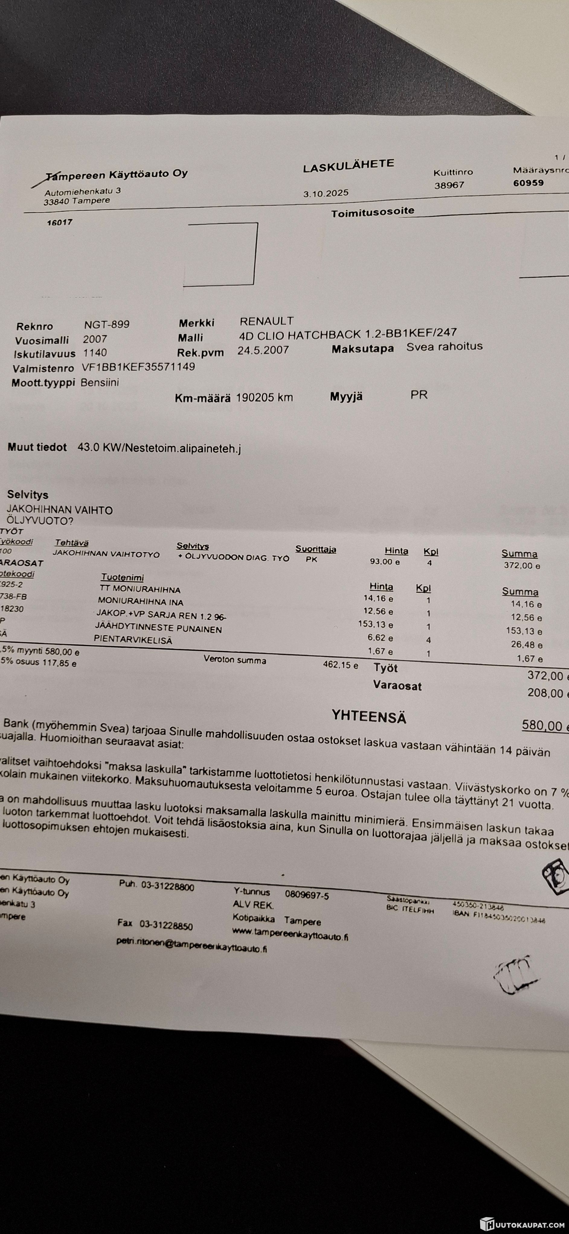 -Jakohihna vaihdettu 10/2025 190000km / tästä on olemassa huoltotosite edellisen omistaja mukaan.