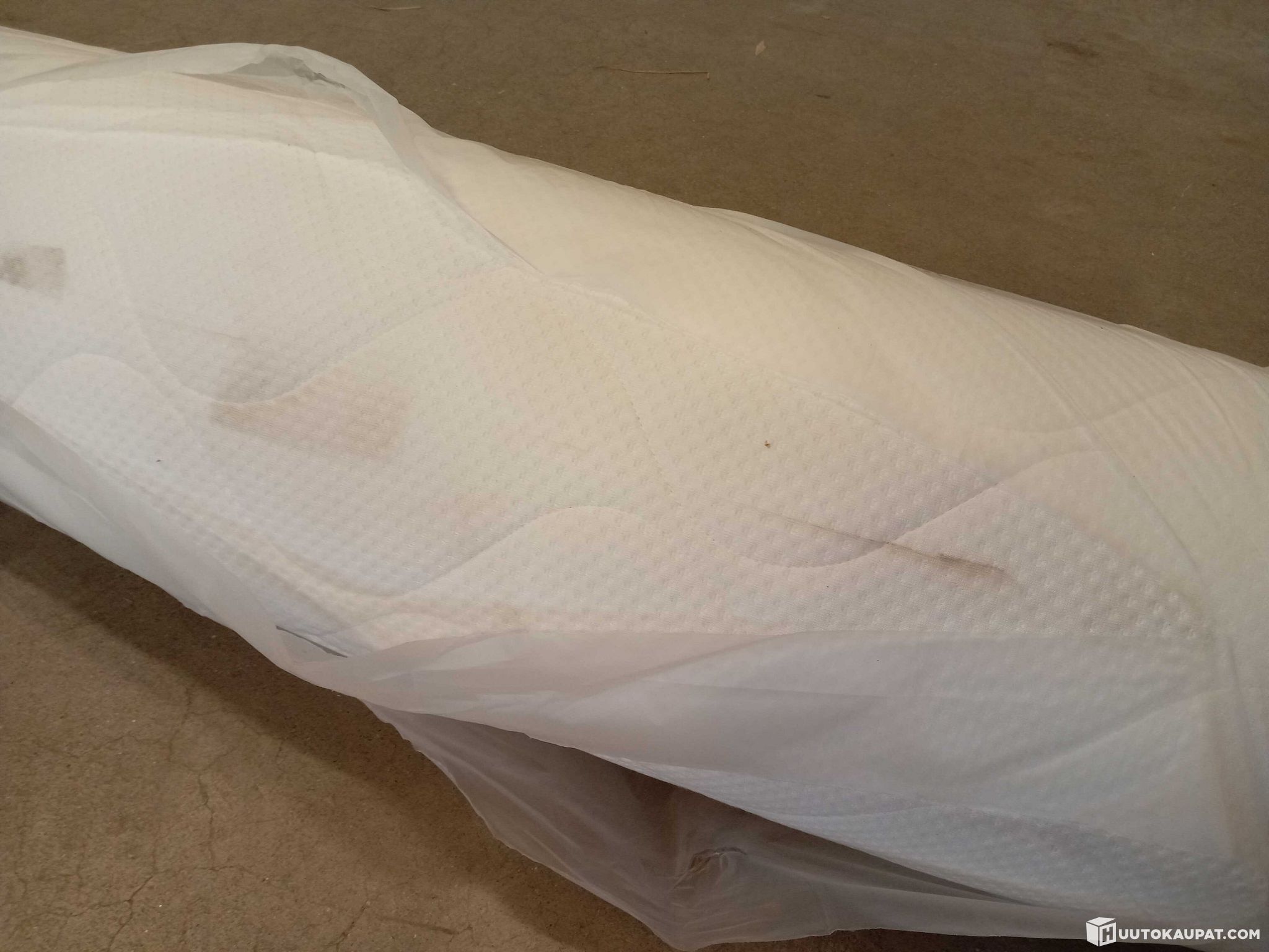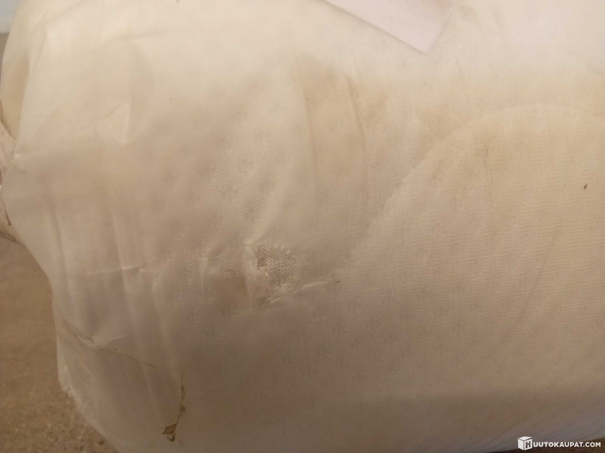 Petauspatja on käyttämätön, sen pakkaus on vaurioitunut varastoinnin aikana, jonka vuoksi siinä on likaa.