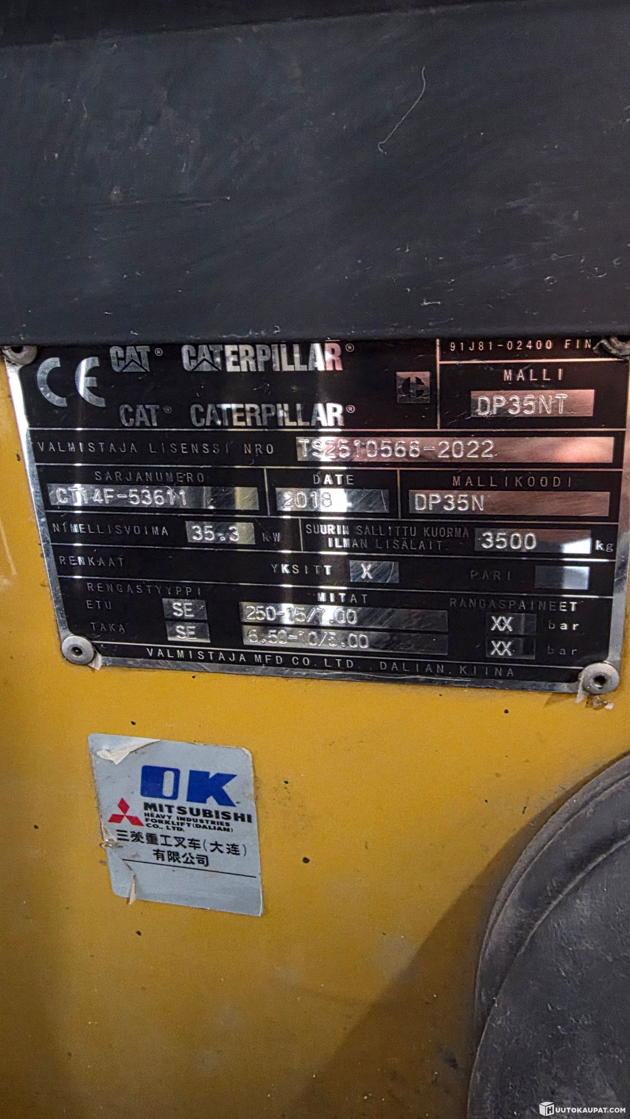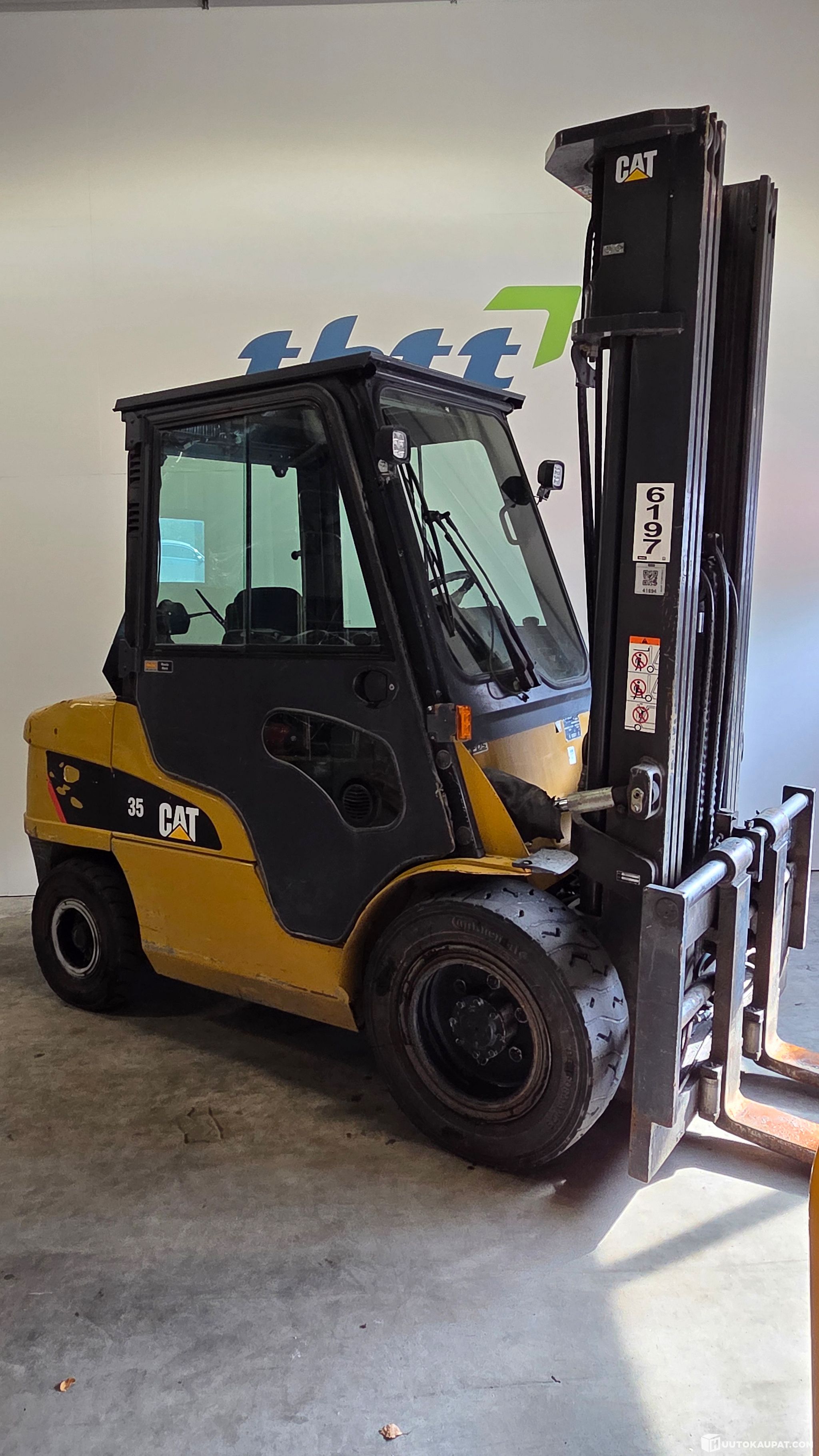 Huutokaupataan kuvissa näkyvä toimintakuntoinen, sekä vuosimallia 2018 oleva Cat DP35NT trukki.