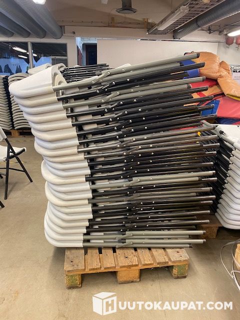 Vuokrakäytöstä poistettuja taittotuoleja ulko ja sisäkäyttöön. Tuoleissa havaittu jokin vika. Suurin osa on täysin käyttökelpoisia.