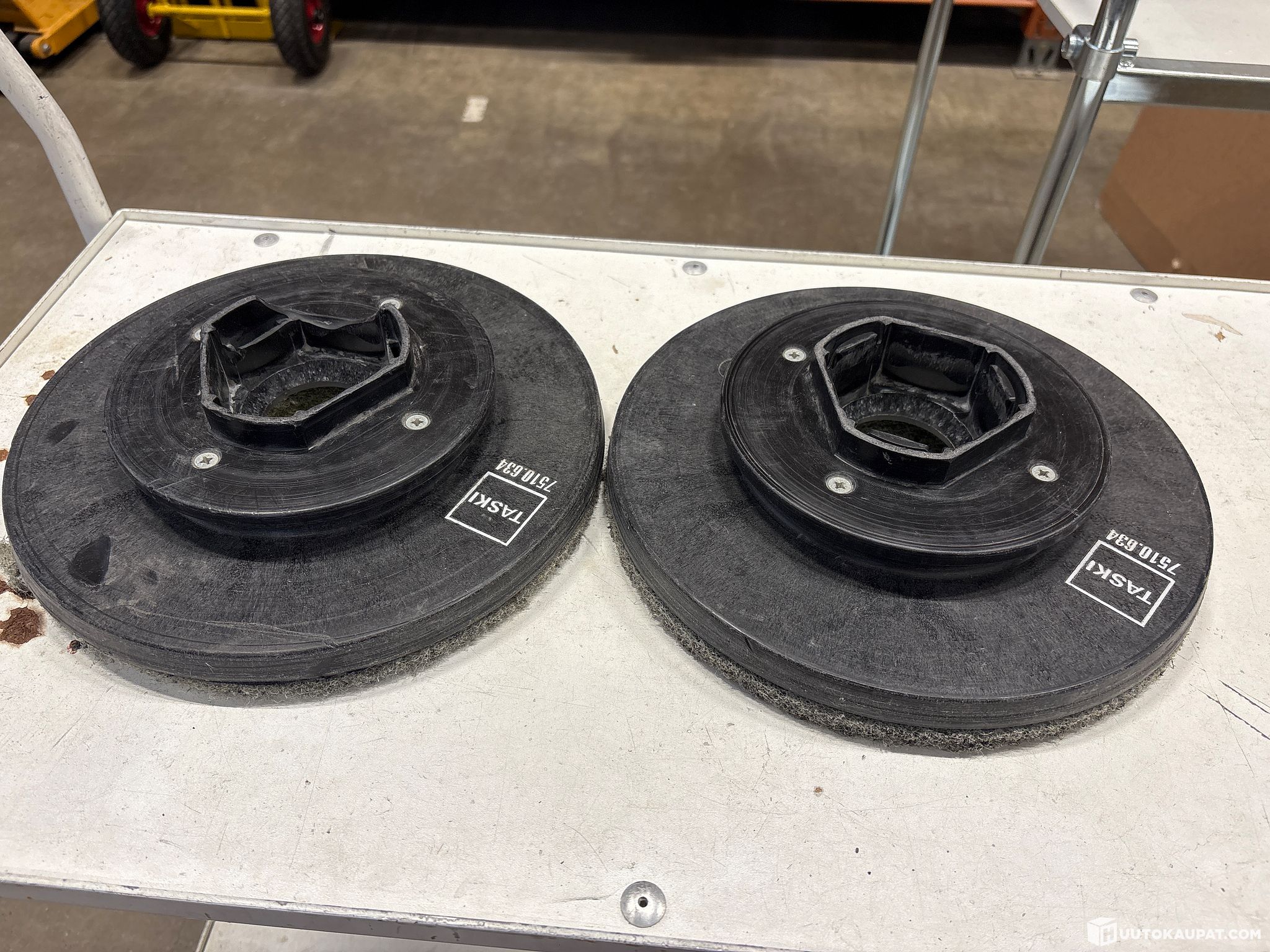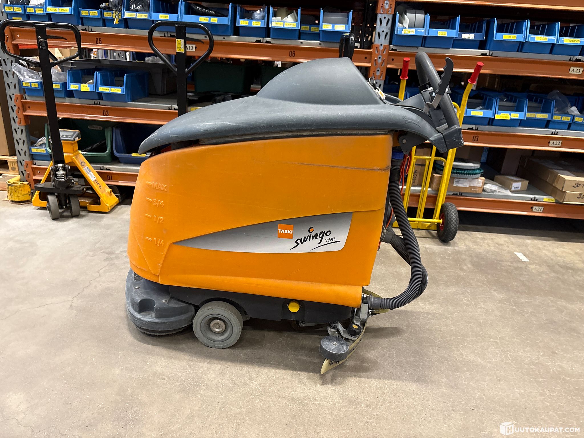 Käytetty kone, käytönjälkiä löytyy. Toinen vetoalusta rikki. Kannen alla oleva muovi murtunut, likavesisäiliön kannen nostaessa kansi hieman vinossa.