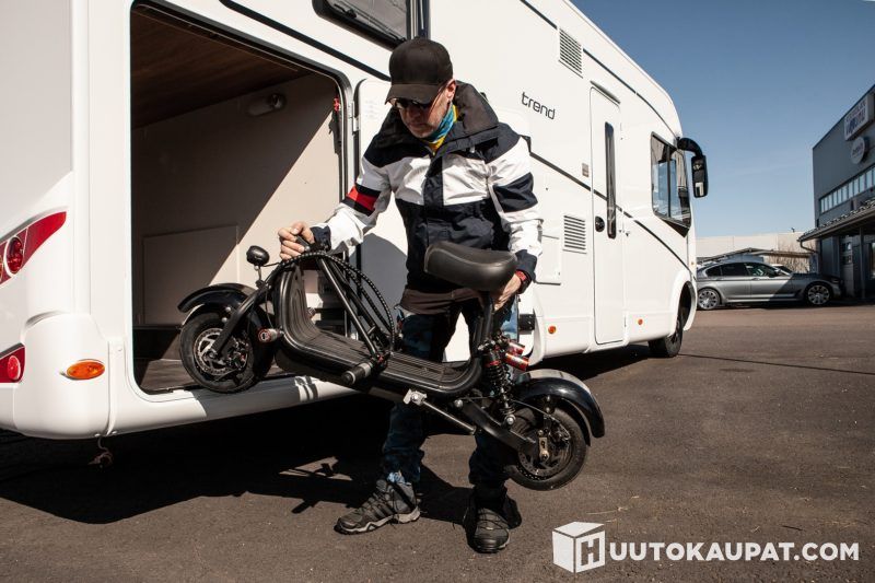 Kontio Caravan Kruiser väri: Kulta on todellinen matkailijan unelma. Kruiser Caravan menee näppärästi taitettuna asuntoauton takaboksiin, josta se on nopeasti otettavissa käyttöön. Tai voit ripustaa sen asuntoauton pyörätelineelle. Pääset liikkumaan Caravan Kruiserilla erittäin näppärästi, päästöttömästi ja lähes äänettömästi.