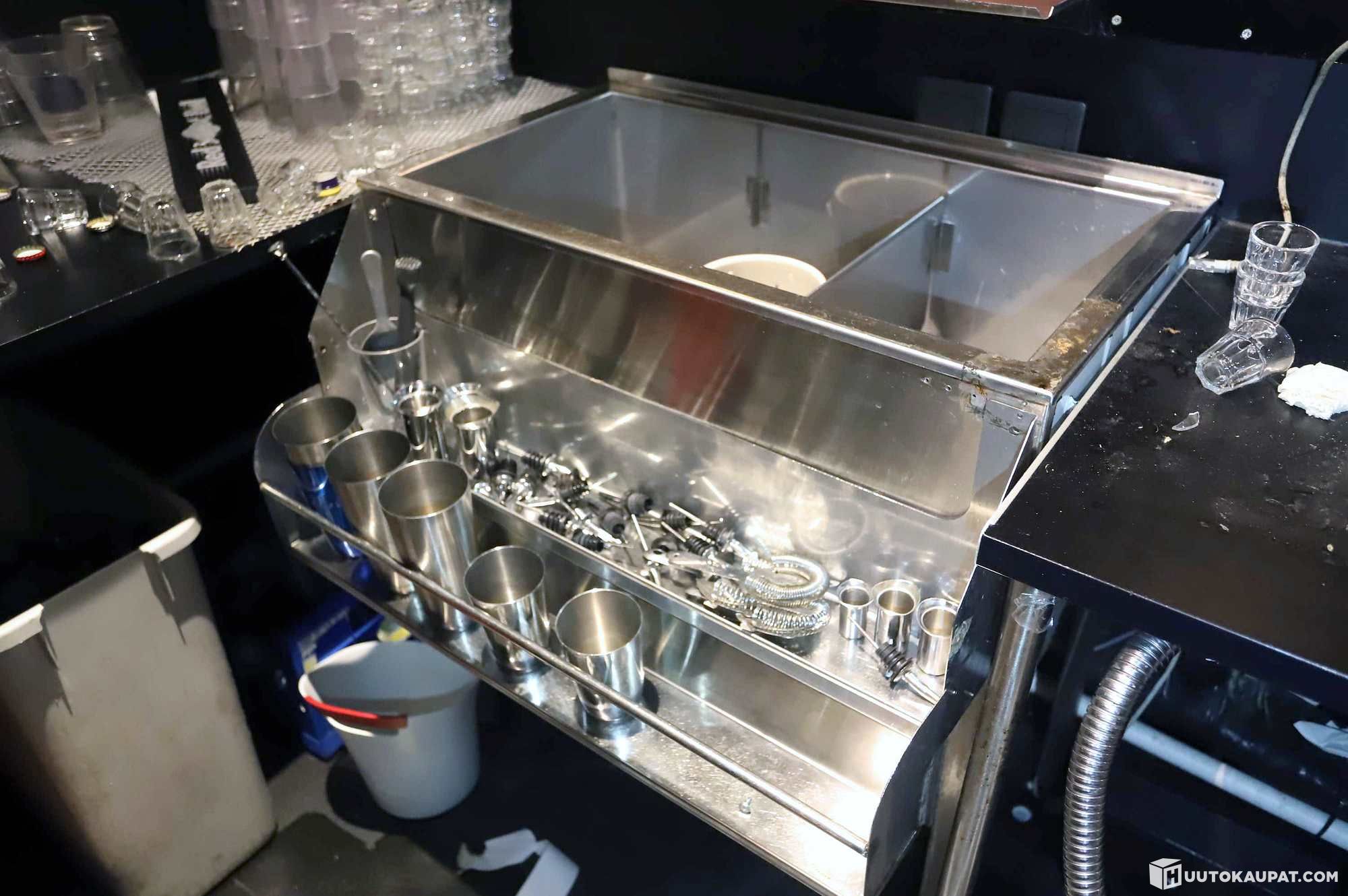 Kuvissa pisteessä olevat mitat ja drinkkivälineet sekä annoskorkit kuuluvat huutoon. Alkoholit, soodahanat ja muut ympärillä näkyvät tuotteet/esineet eivät kuulu huutoon.