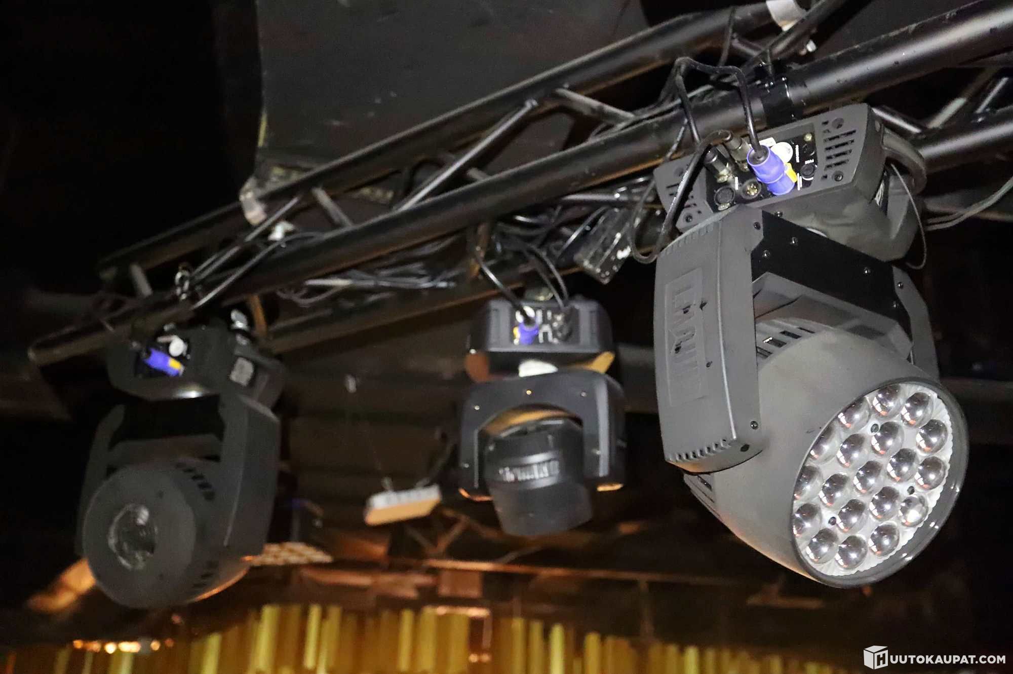 Valonheittimet ovat noin kolmen metrin korkeudessa, huonekorkeus on noin 5 metriä.