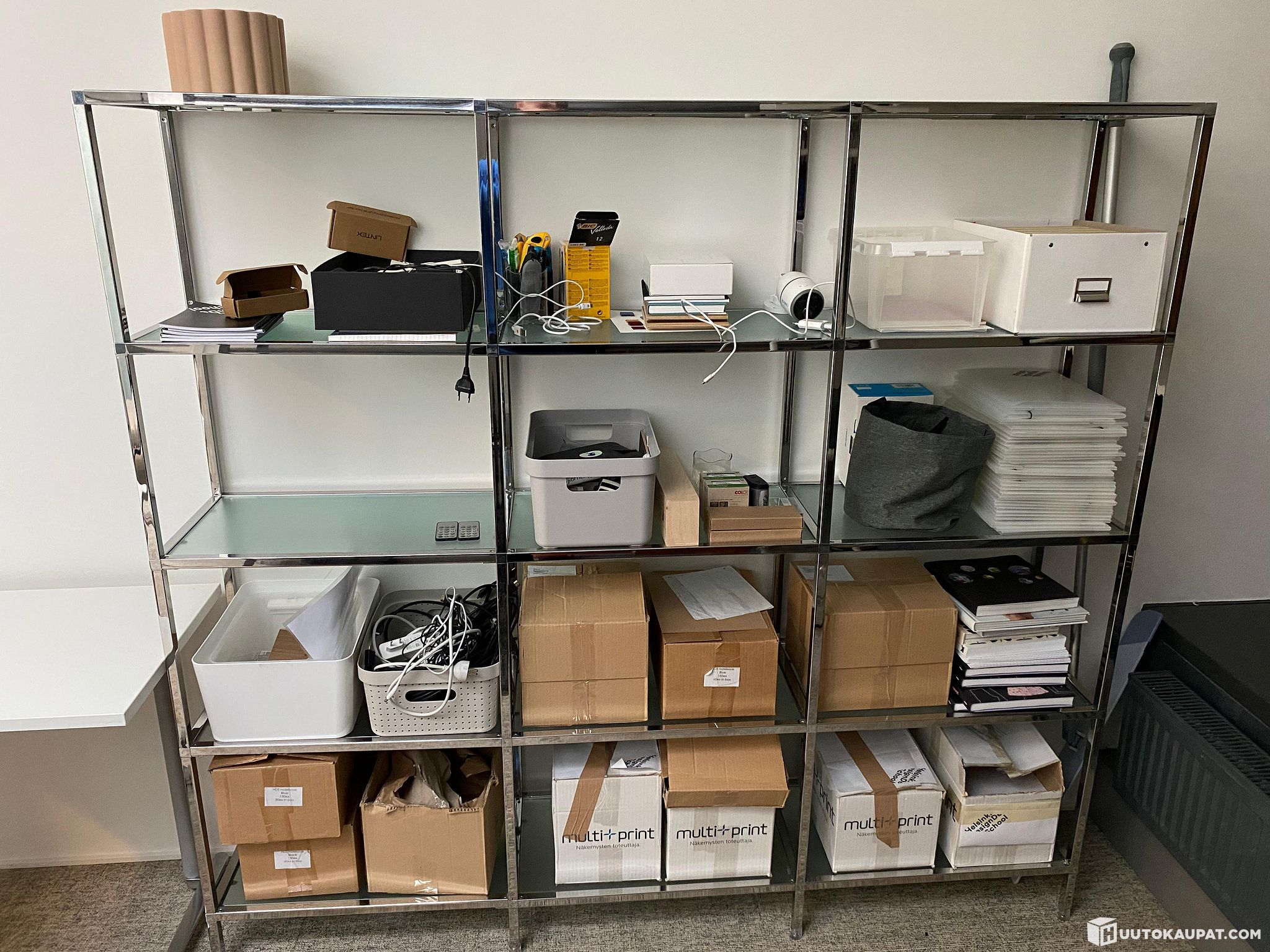 Kohde sijaitsee neljännessä kerroksessa, kohteessa pieni hissi. Hylly tulee kuljettaa portaita pitkin alas.