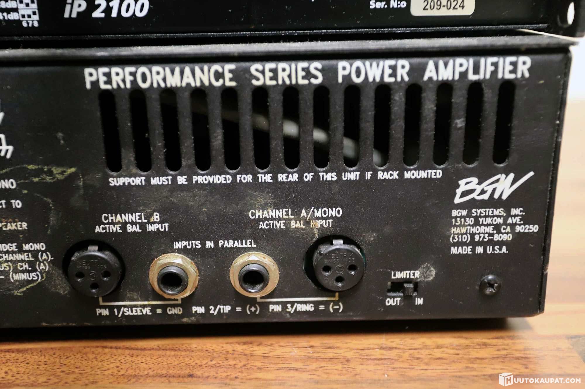 BGW performance Series 3-vahvistin. Virtajohto on vedetty poikki.