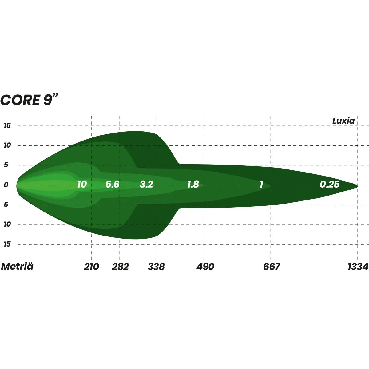 Core 9 toimii erinomaisesti lisävaloparina tai useamman valaisimen kokoonpanossa. Laaja käyttöjännite ja selkeät liitännät tekevät siitä luotettavan valinnan autoihin, hyötyajoneuvoihin ja työkoneisiin. Toimii erinomaisesti sekä normaaleissa kilpiasennuskorkeuksissa että korkeissa kattoasennuksissa.