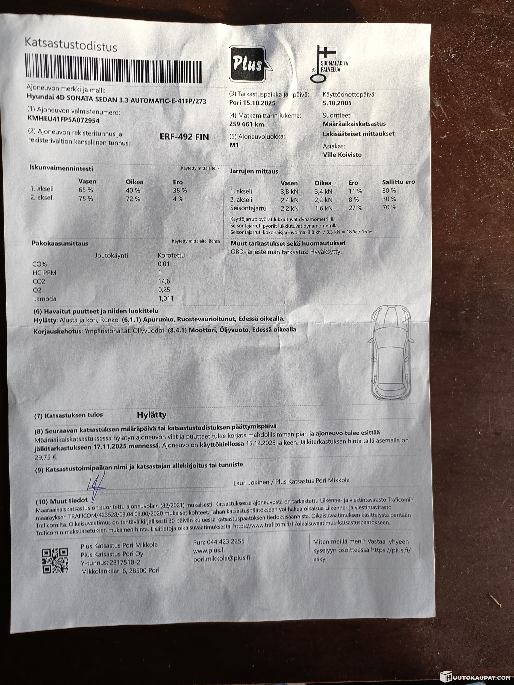Vikoja katsastuksessa, autolla saa ajaa 15.12 saakka.