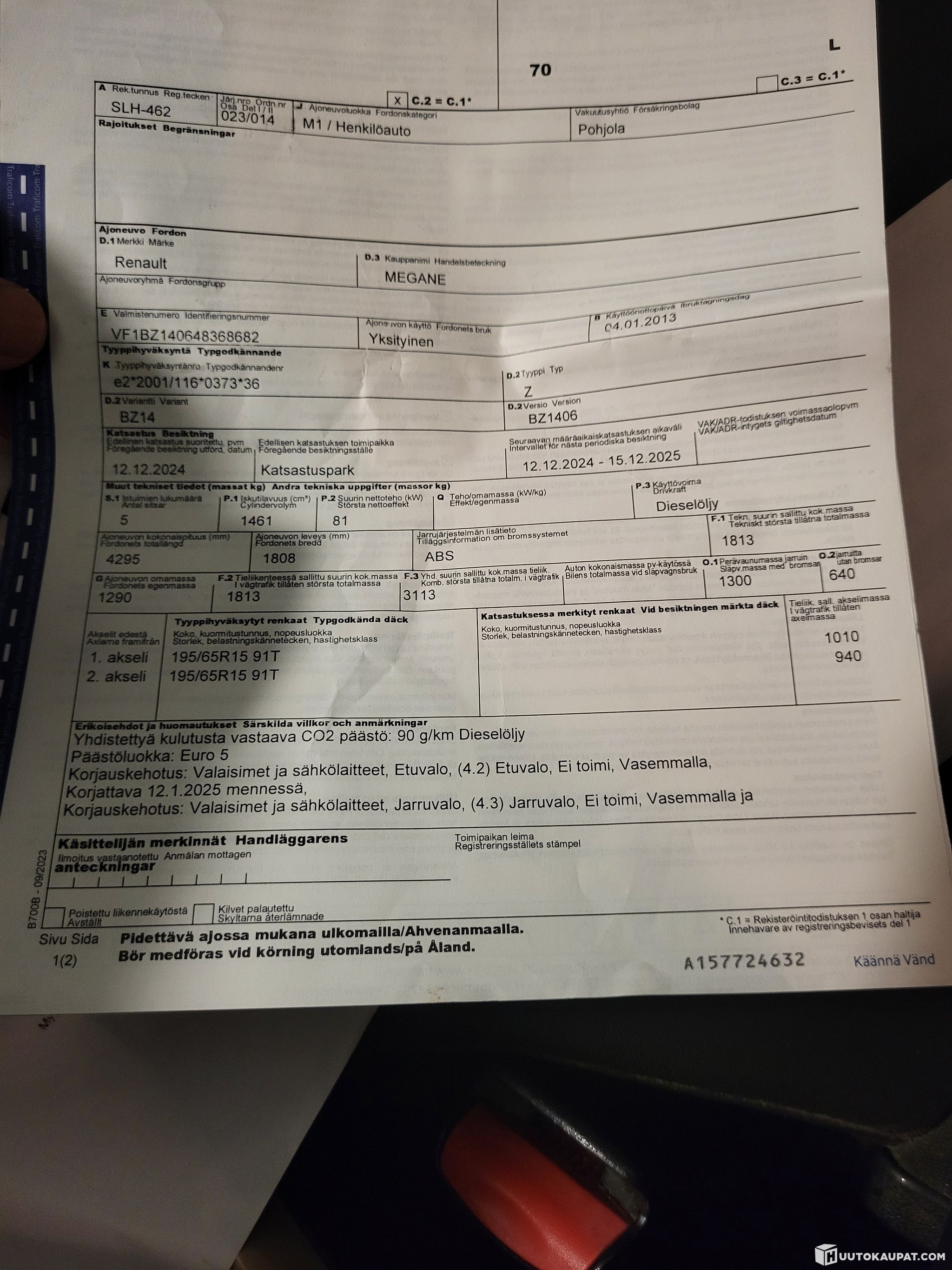 Myynnissä luotettava Renault Megane 2013 (diesel), jolla on ajettu 367 000 km. Auto on edelleen päivittäisessä ajossa ja toimii hyvin.