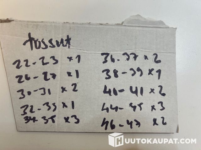 Useita pareja sinisenä ja pinkkinä, eri kokoja (EU 24–44, tarkemmat koot kuvissa)